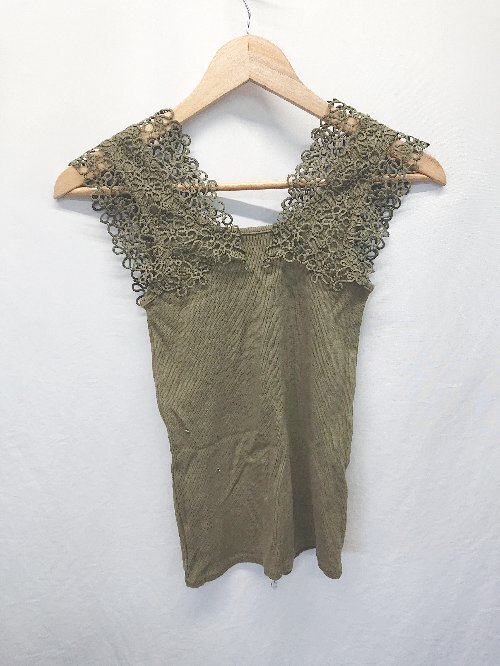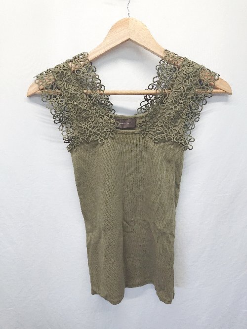 ◇ Θ φ FRENCH PAVE フレンチパヴェ レース ブラ隠し タンクトップ サイズSM カーキ レディース E