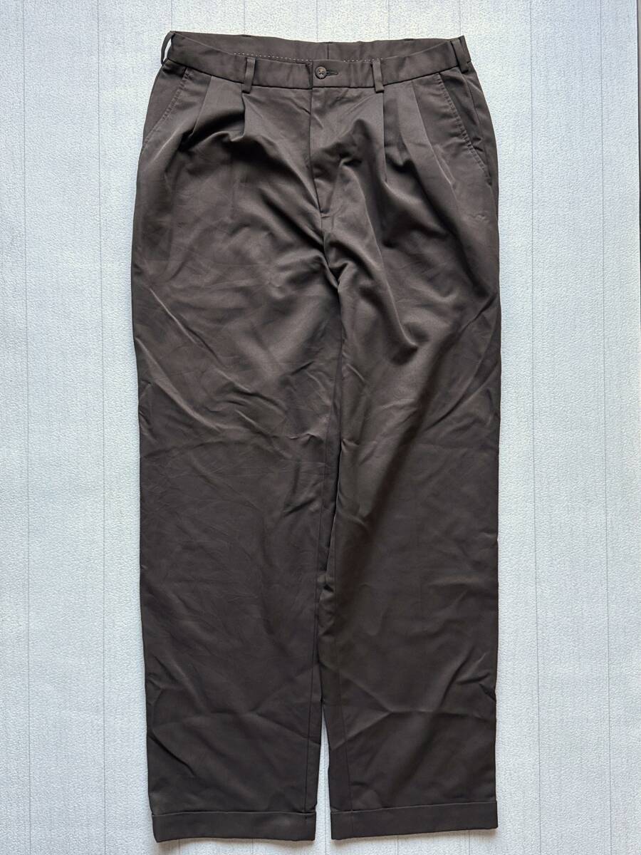 ☆送料無料☆ VAN HEUSEN ヴァンヒューゼン USA直輸入 古着 ポリ タック入り 裾ダブル ロングパンツ トラウザー メンズ 34 ブラウン 中古