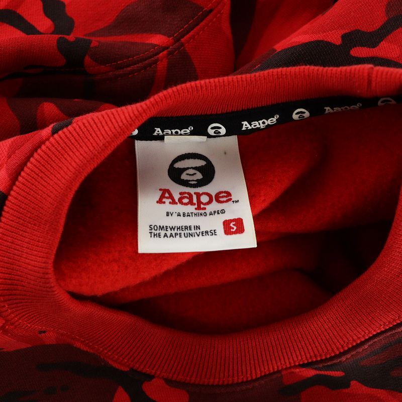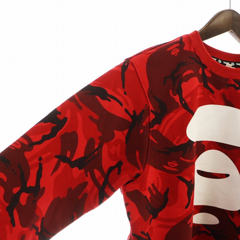 アベイシングエイプ A BATHING APE トレーナー スウェット 長袖 迷彩 カモフラ ロゴ 裏起毛 S 赤 レッド