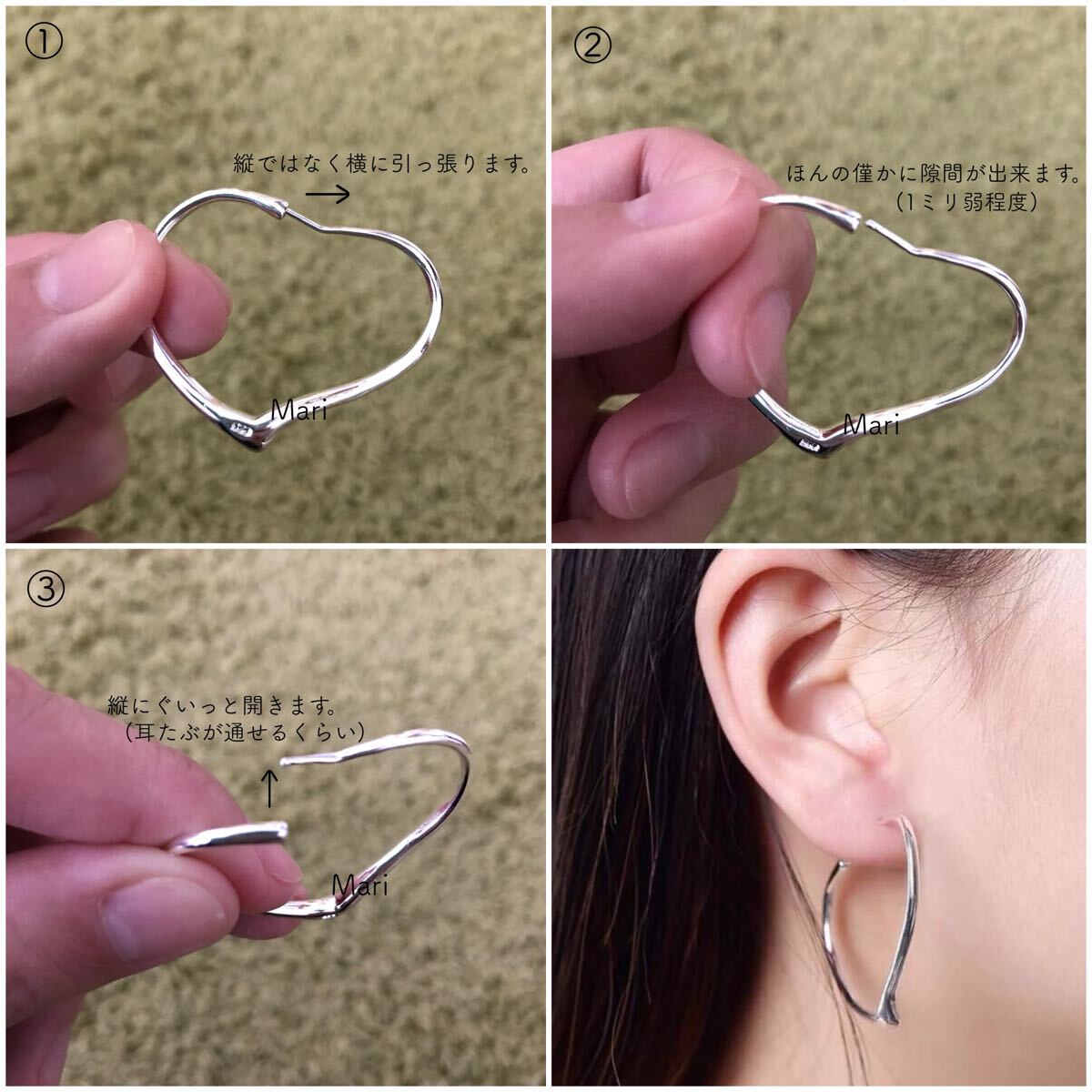 ※装着時、両耳のハートの先端が内側に向きます♪