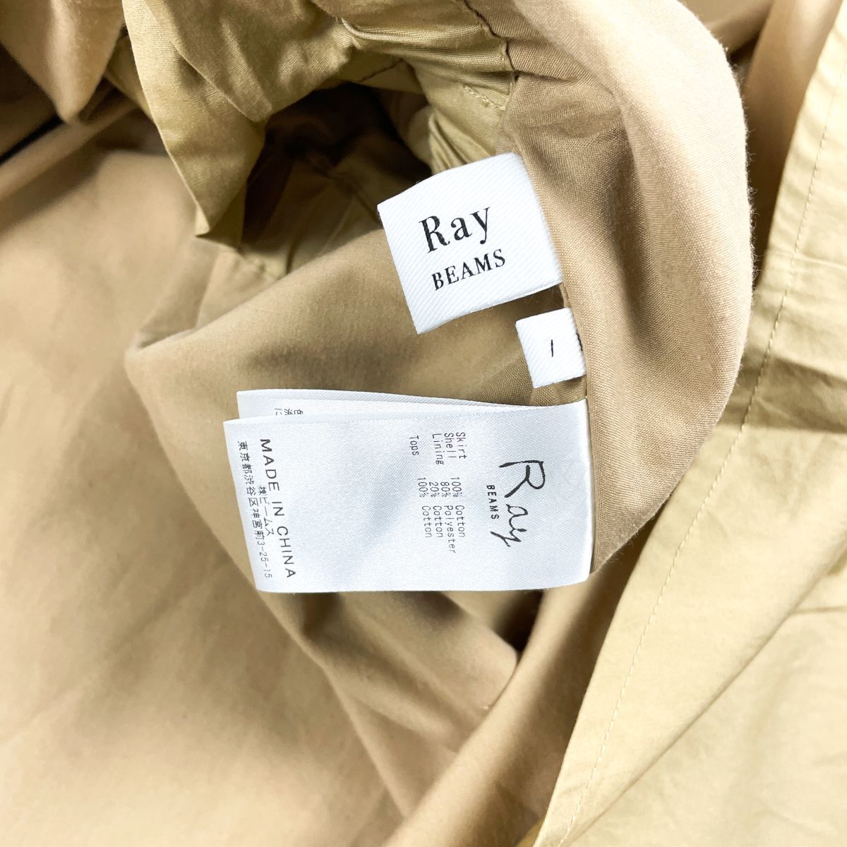 美品 Ray BEAMS レイビームス ハイウエストリボンフレアスカート フリル 裏地付 膝丈 ベージュ サイズ1*ED219