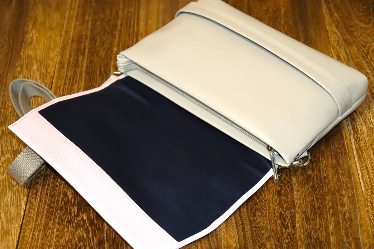 ショルダーベルトを外すことでクラッチバッグとして使用することができます。