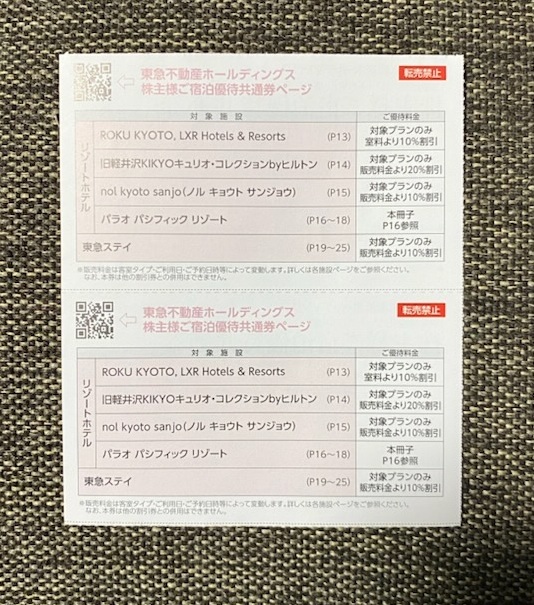 東急不動産ホールディングスの株主宿泊優待券2枚セットです。