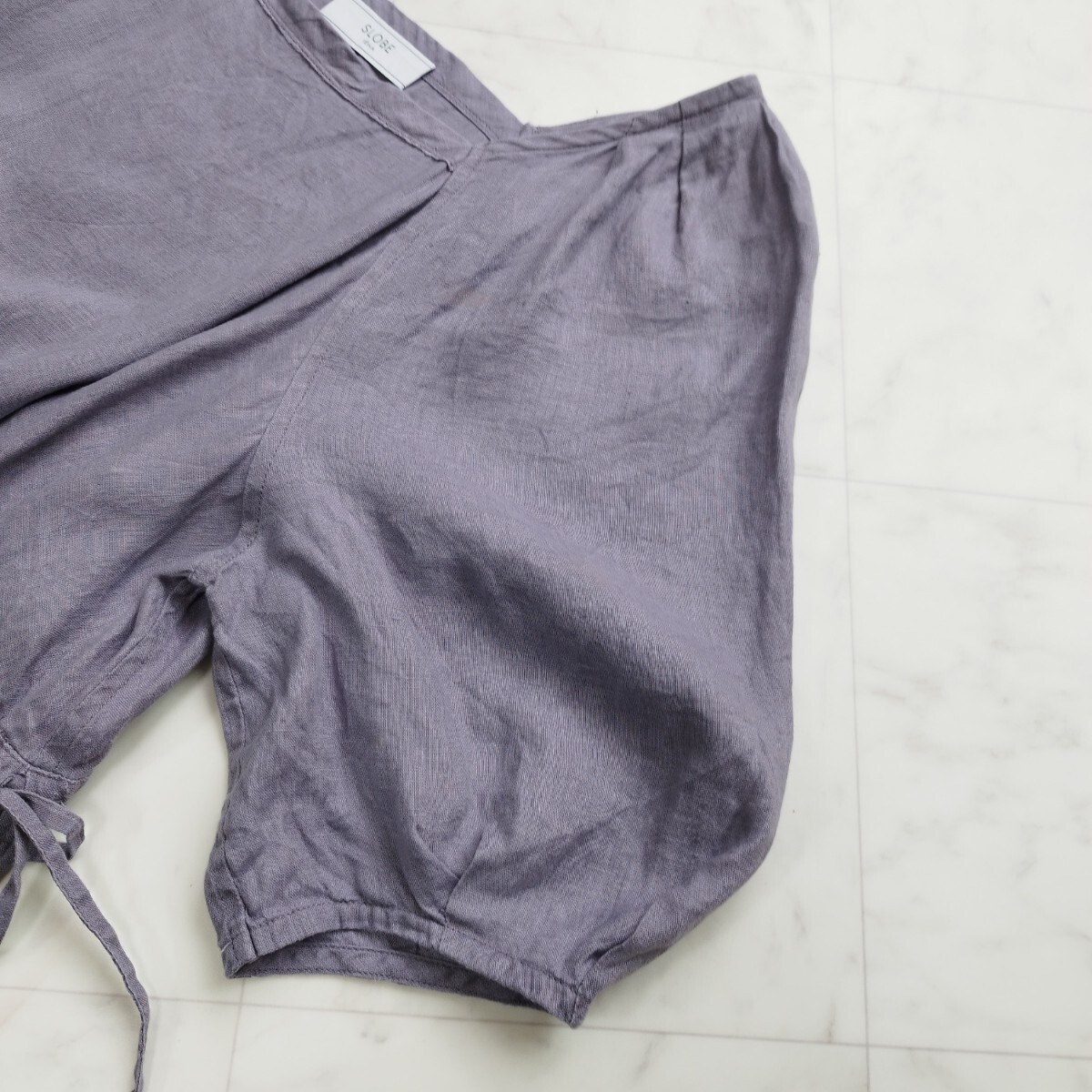 【SLOBE INA】リネン100 スクエアネック ギャザーワンピース