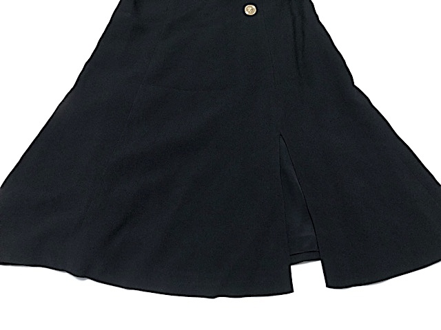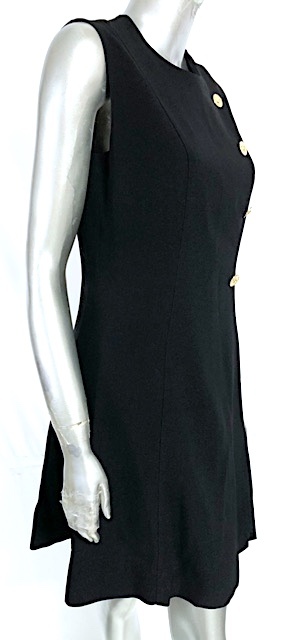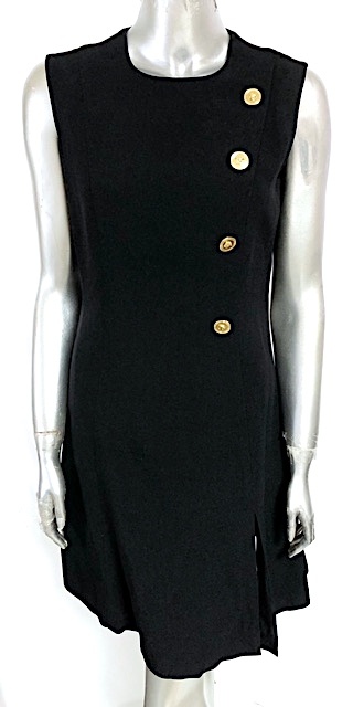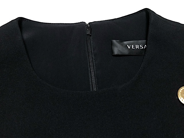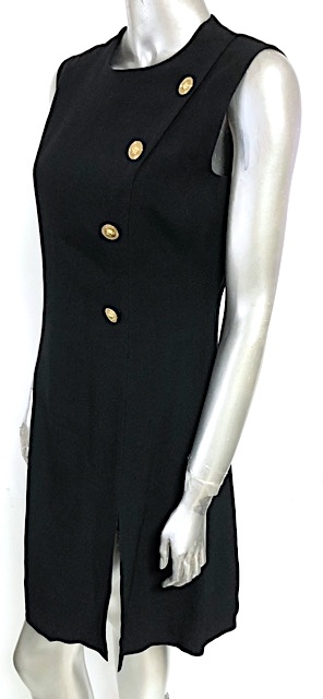 ☆二点落札で送料無料!V048 VERSACE ヴェルサーチ ノースリーブ ドレス ワンピース 金ボタン 黒 44 M スリット 上品 ブラック フォーマル