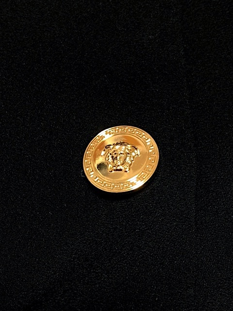 フロントに施されたブランドアイコン「メデューサ」入りのゴールドボタンがエレガントで印象的。