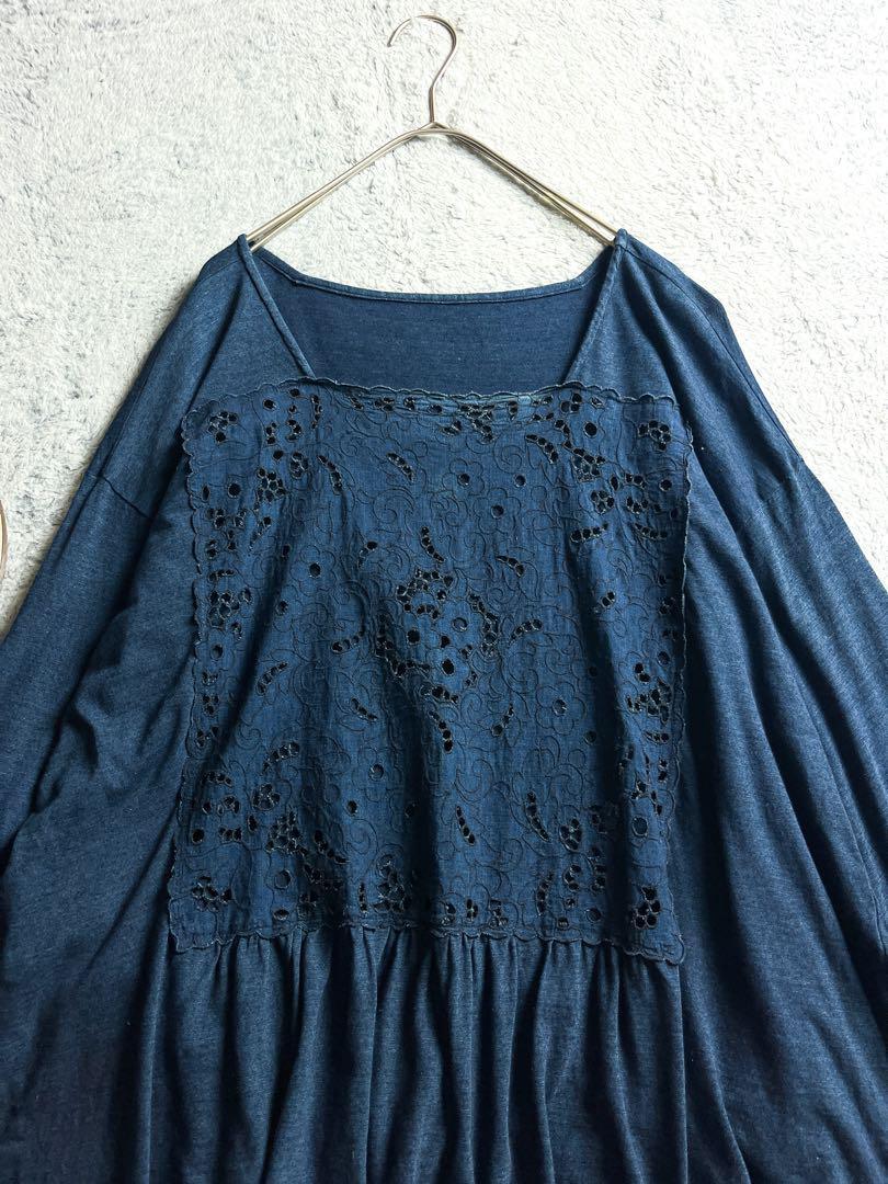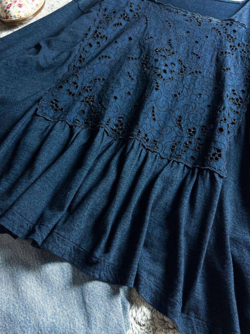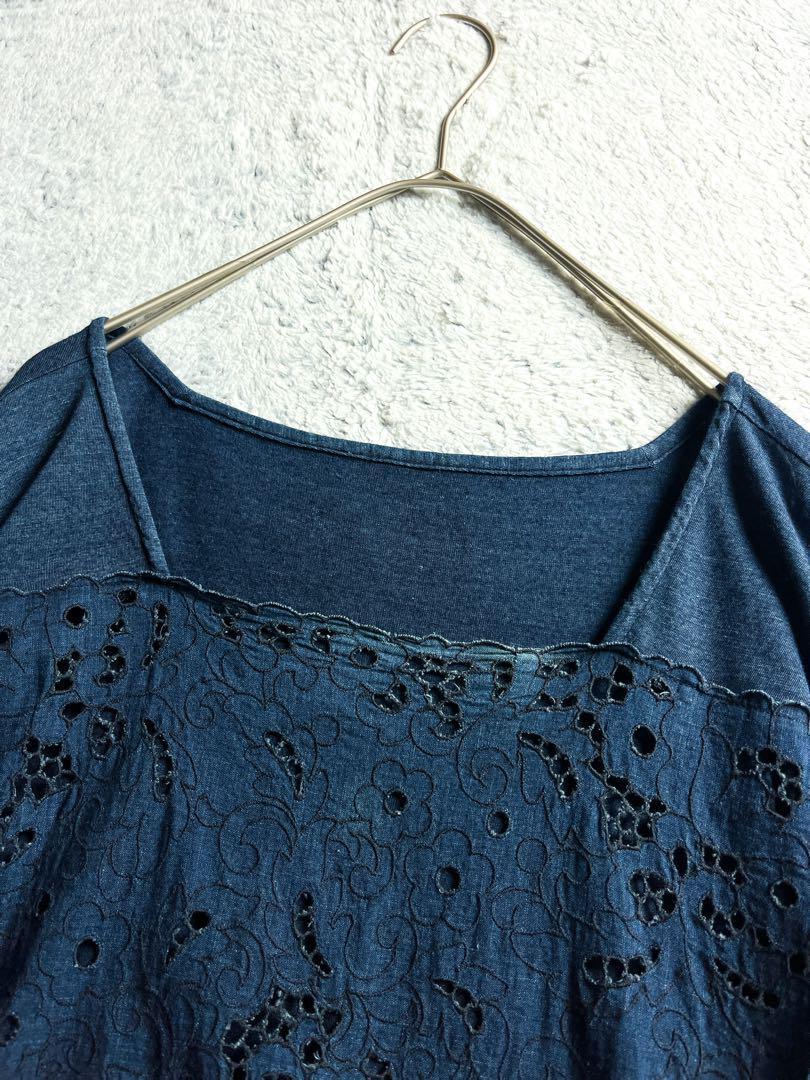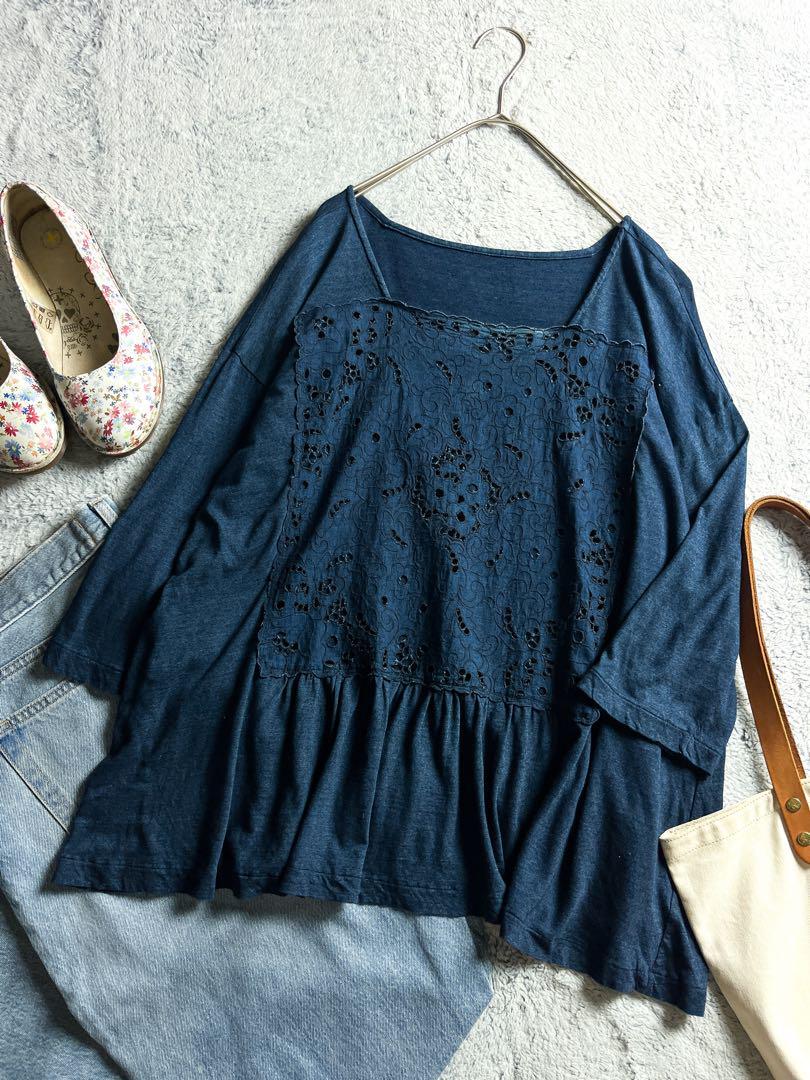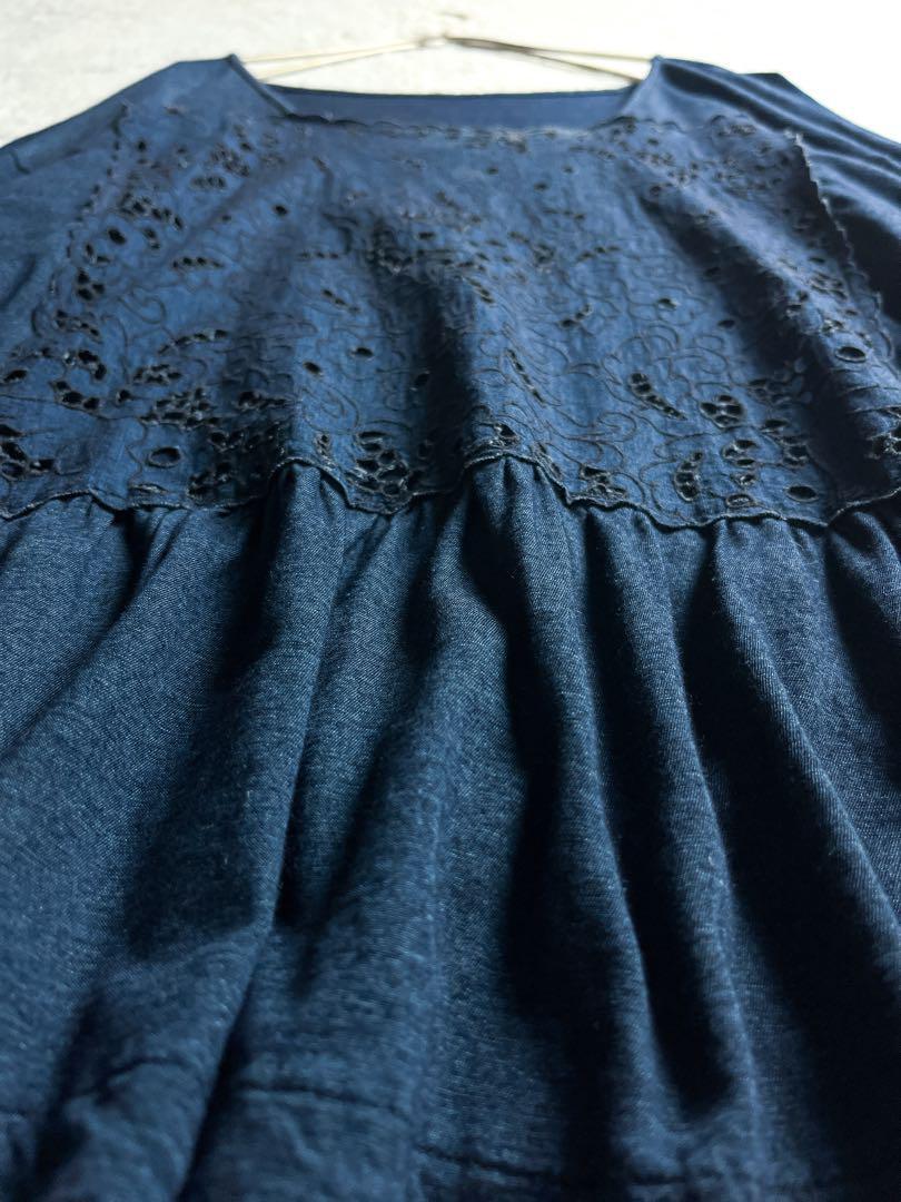 インディゴカットワークカットソー