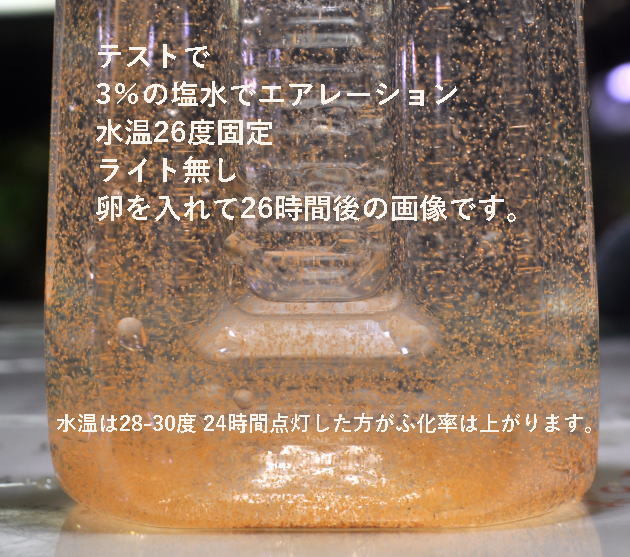 水温は28-30度 24時間点灯した方がふ化率は上がります。