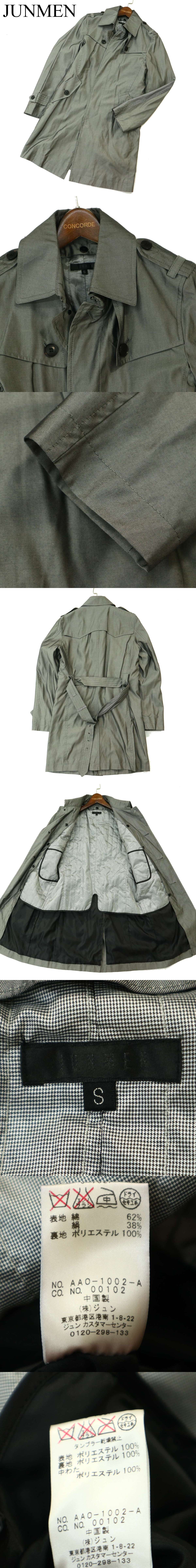 JUNMEN ジュンメン 秋冬 絹 シルク混★ 中綿 ライナー 微光沢 トレンチ コート Sz.S メンズ グレー