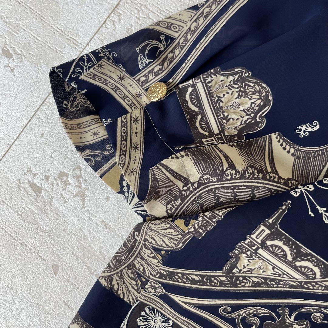 昭和レトロネイビー パターン柄ヨーロピアン風半袖ブラウススカーフ柄ネイビーq1
