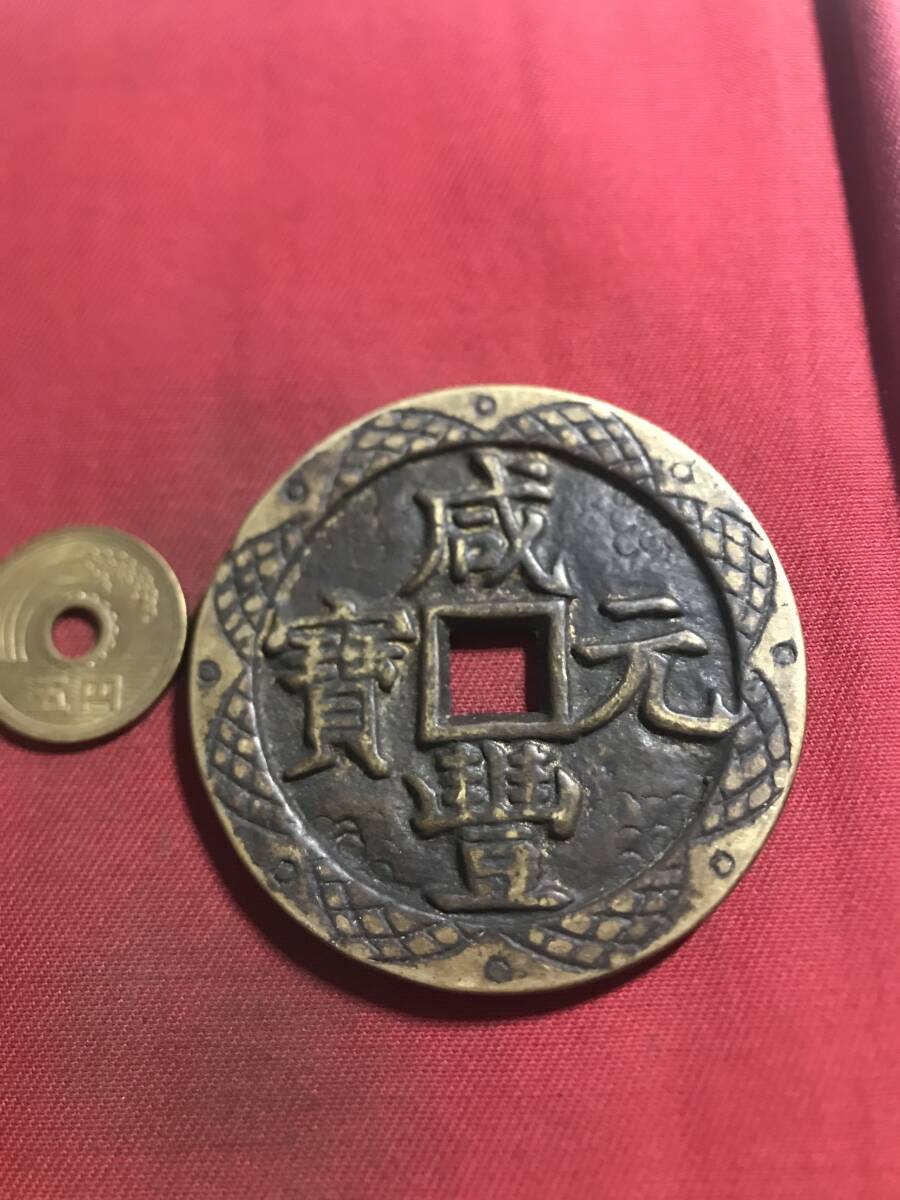 咸  豊 元 寶  背  当 千 と 記号   大きくて 周り模様があり 珍しい