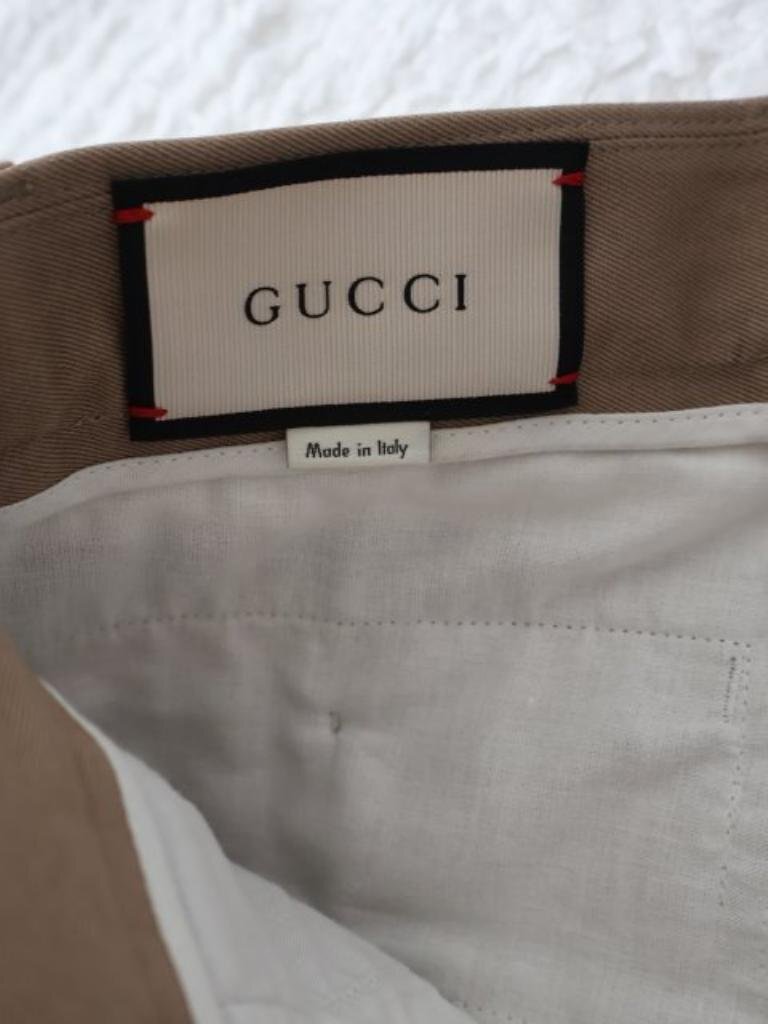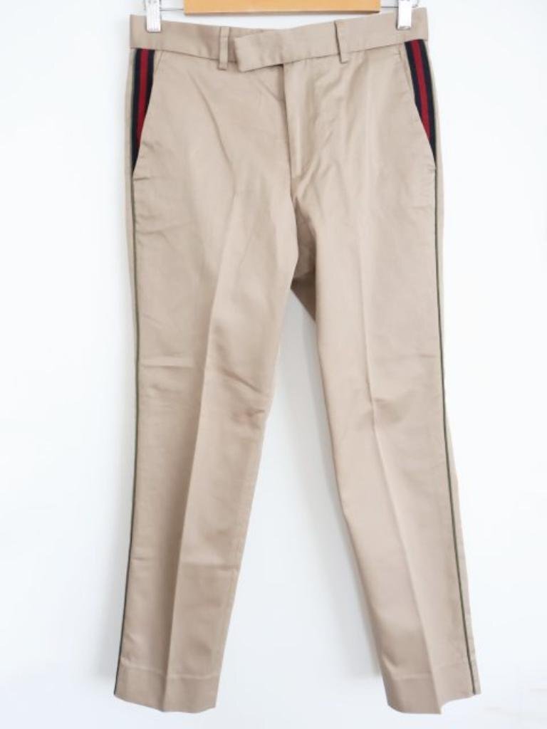 【送料込】GUCCI グッチ サイドラインパンツ 【メンズ】Mサイズ ベージュ×カーキ×レッド等 ハイブランド 大人 おしゃれ 6454905