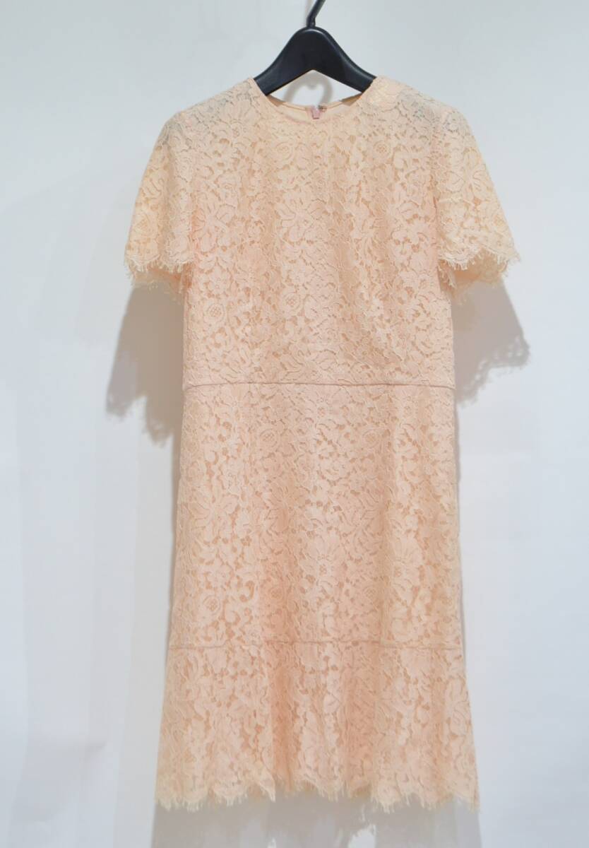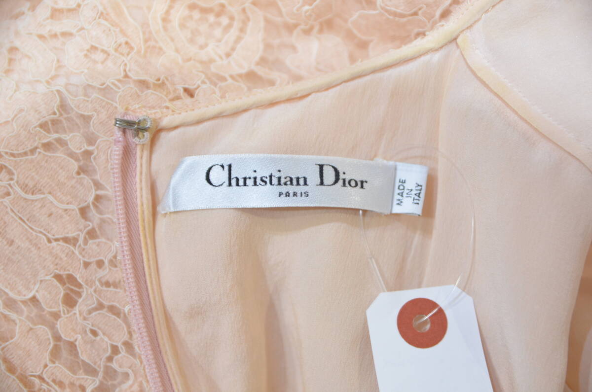 Christian Dior クリスチャン ディオール 総レース 半袖 ワンピース ピンクベージュ F38 Y-333862