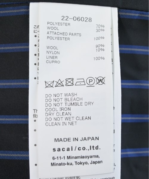 ポリエステル70%、毛30%、(別布1)ポリエステル100%、(別布2)毛90%、ナイロン10%、(裏地)キュプラ100%、(付属)ポリエステル100% |