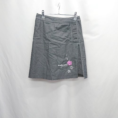 ◇ ⊂ marie claireマリ・クレール フロントボタン 内側ドット ミニ丈 台形 スカート サイズS グレー系 レディース E