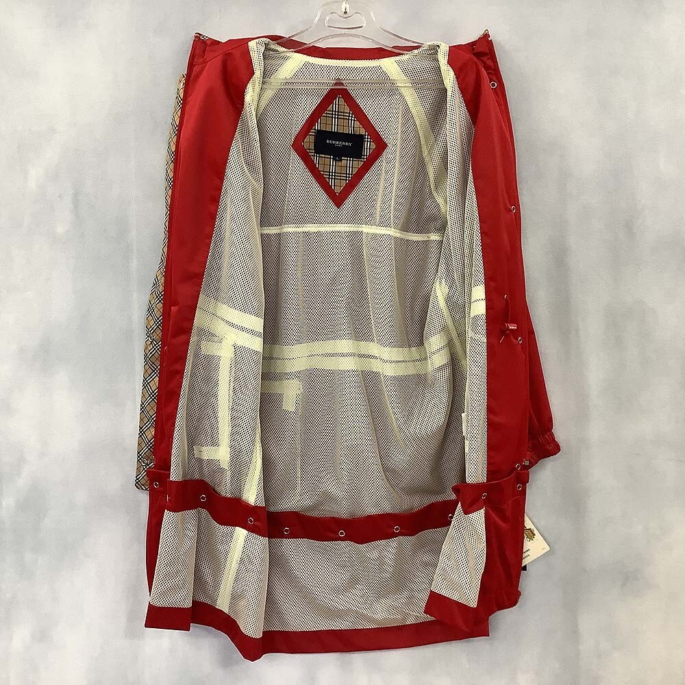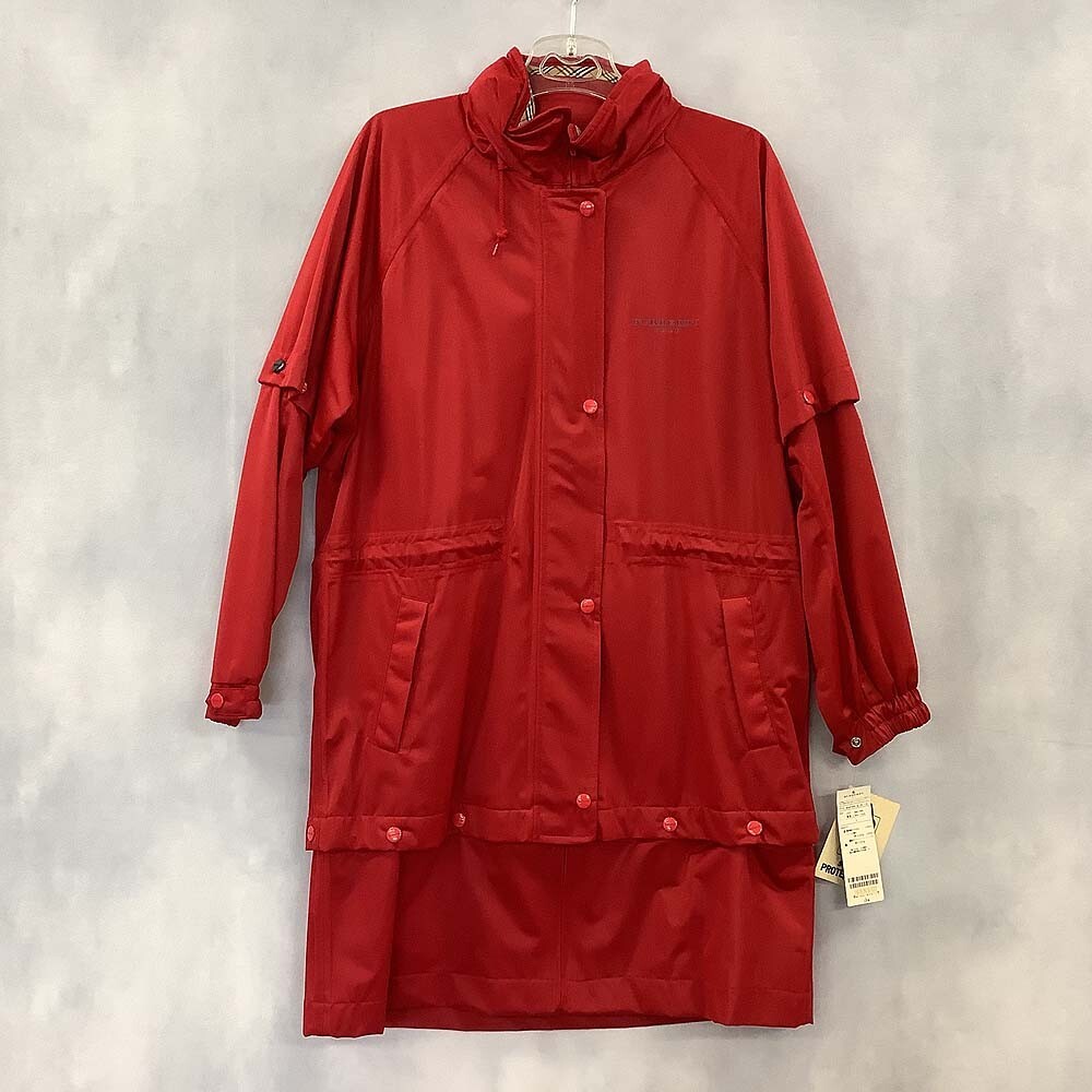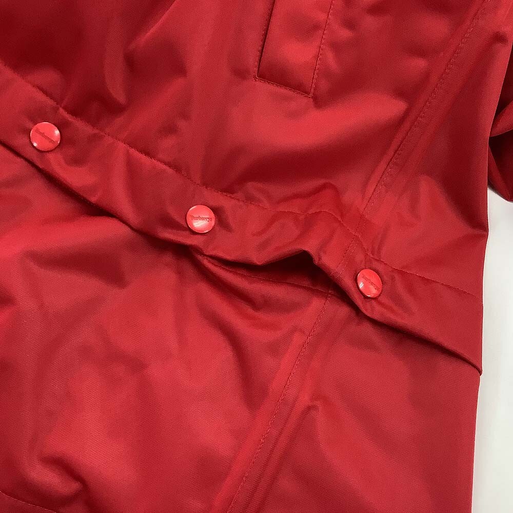 フードが襟に収納でき、袖、裾がスナップボタンで取り外し可能です。シームテープの一部にひび割れがあります。