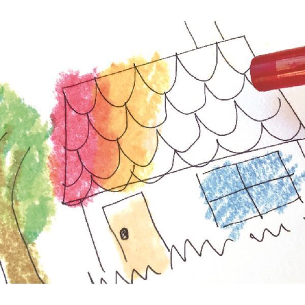 ●線画の上からぬると、透明水彩絵の具で描いたように線画が透けてみえる新感覚のクレヨンです。