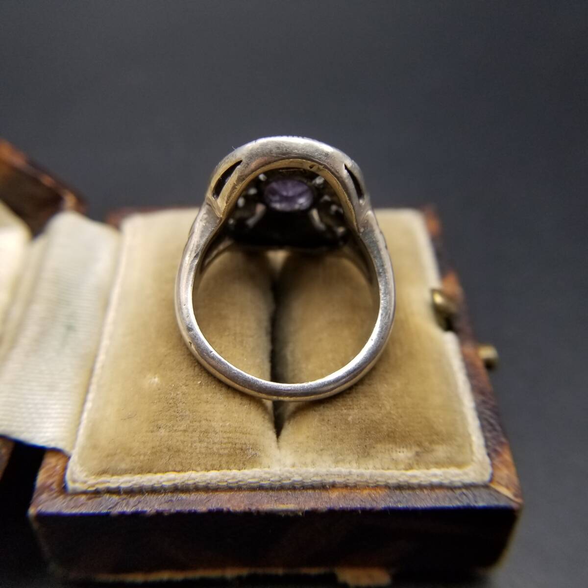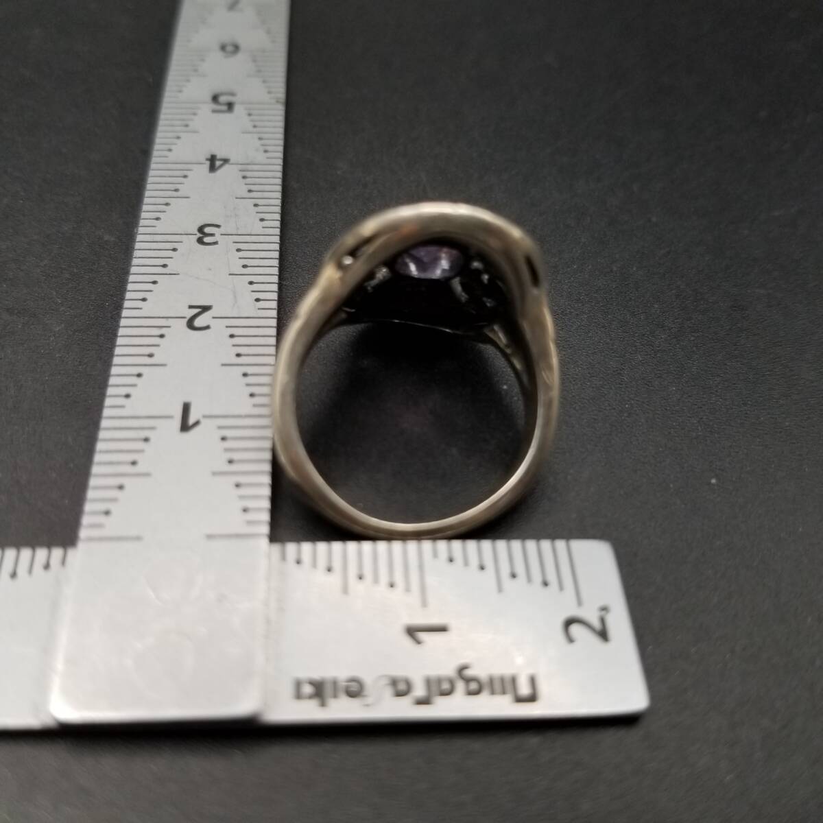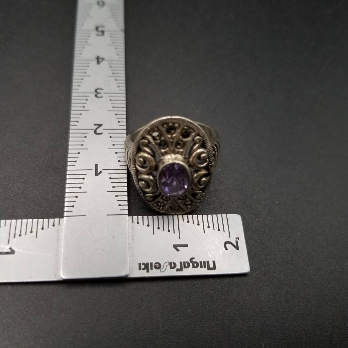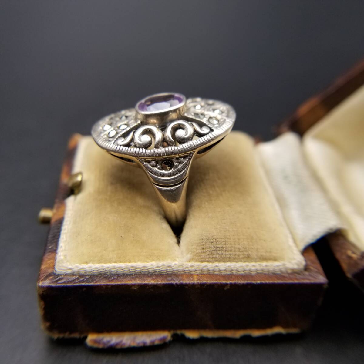 アメジスト マーカサイト 装飾 オーバル ヴィンテージ リング 925 シルバー 銀 指輪 透かし 曲線美 オープンワーク エレガント R15-V