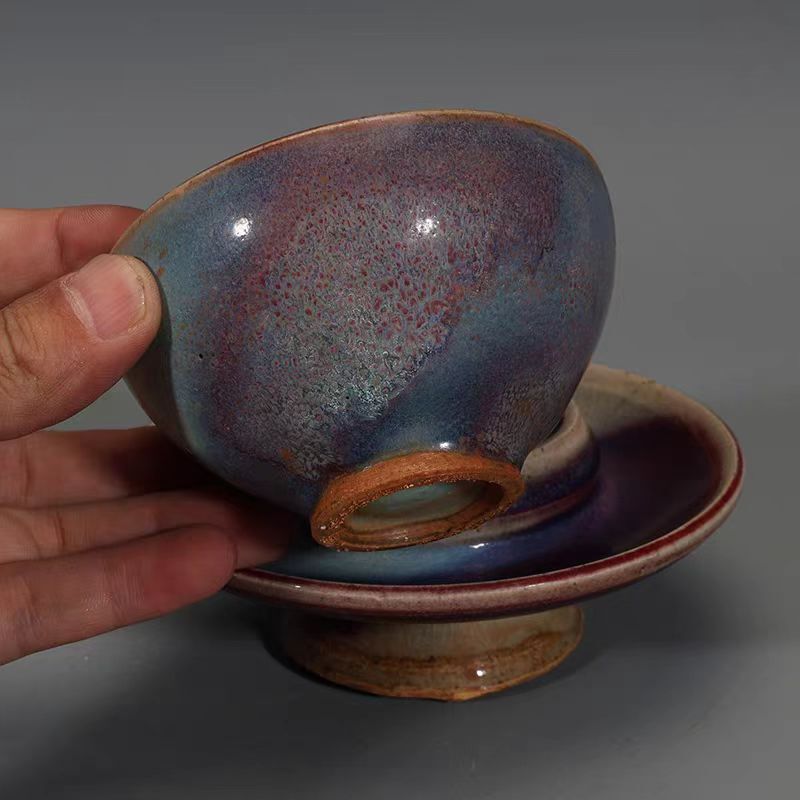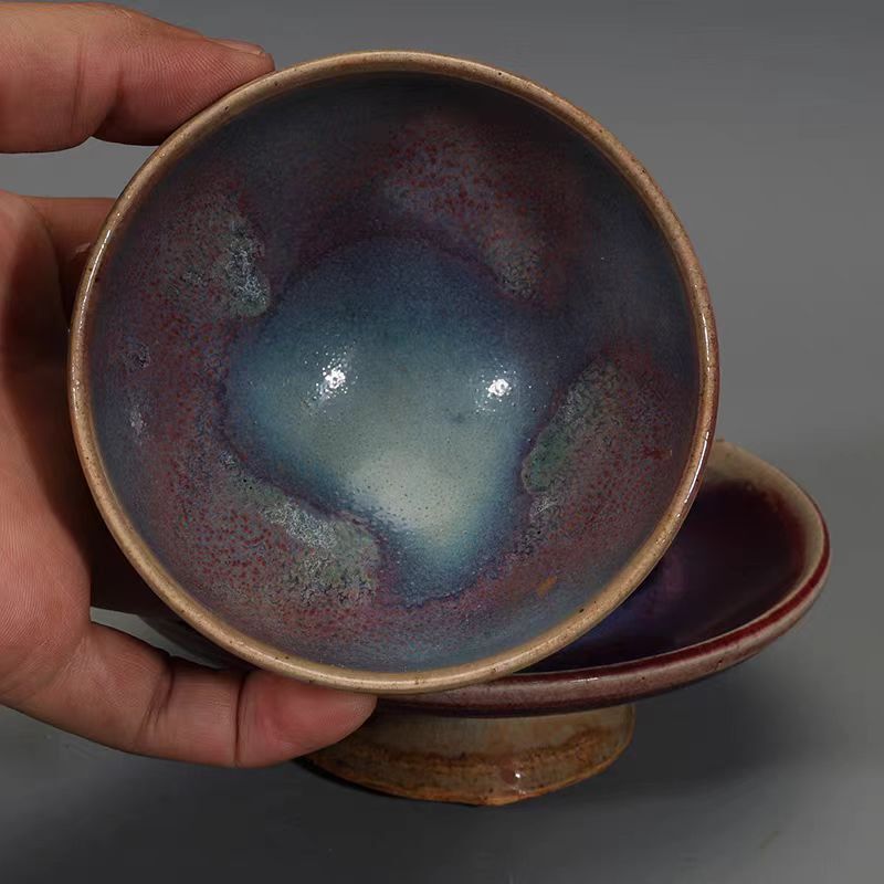 宋時代 古陶磁器 鈞窯 藍紫釉 茶盞 杯盞 建盞 茶道具 文案 置物 古董品 骨董 旧家藏出 唐物 中国古玩 古美術品