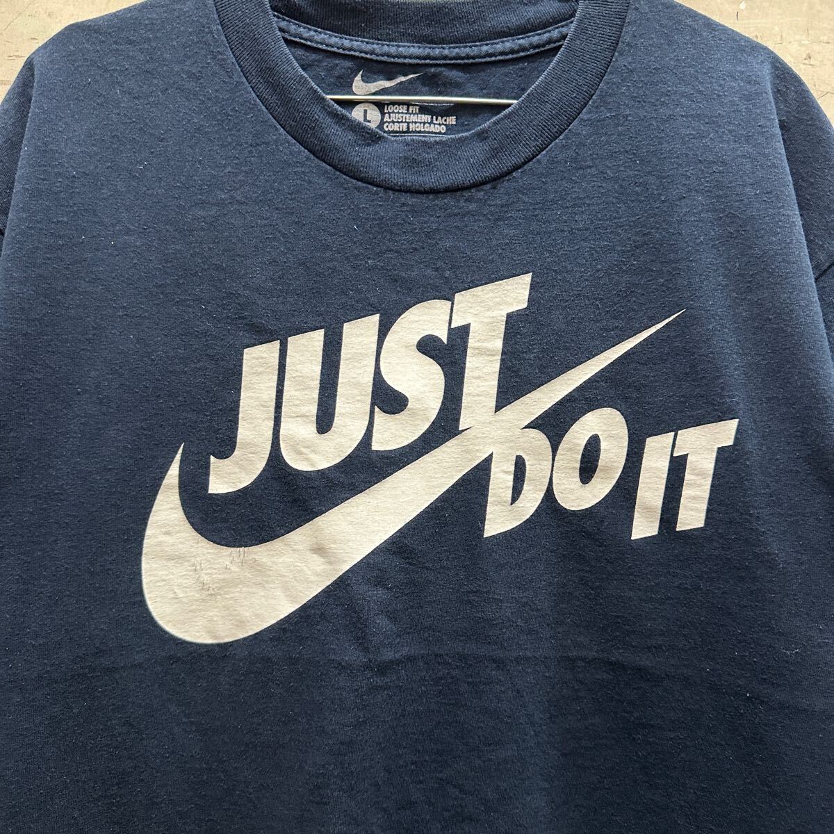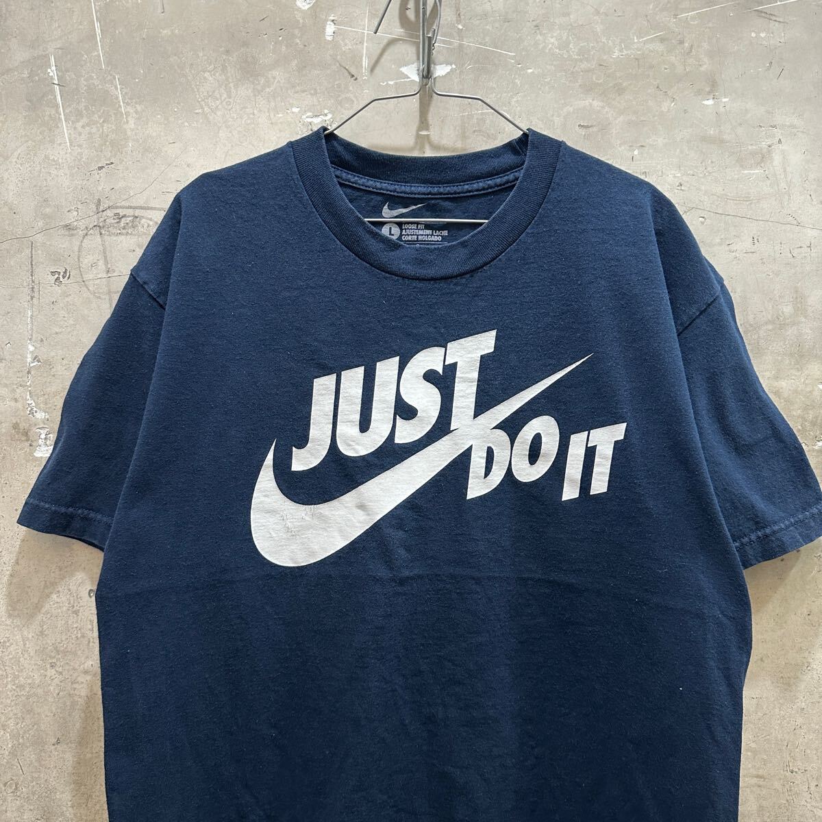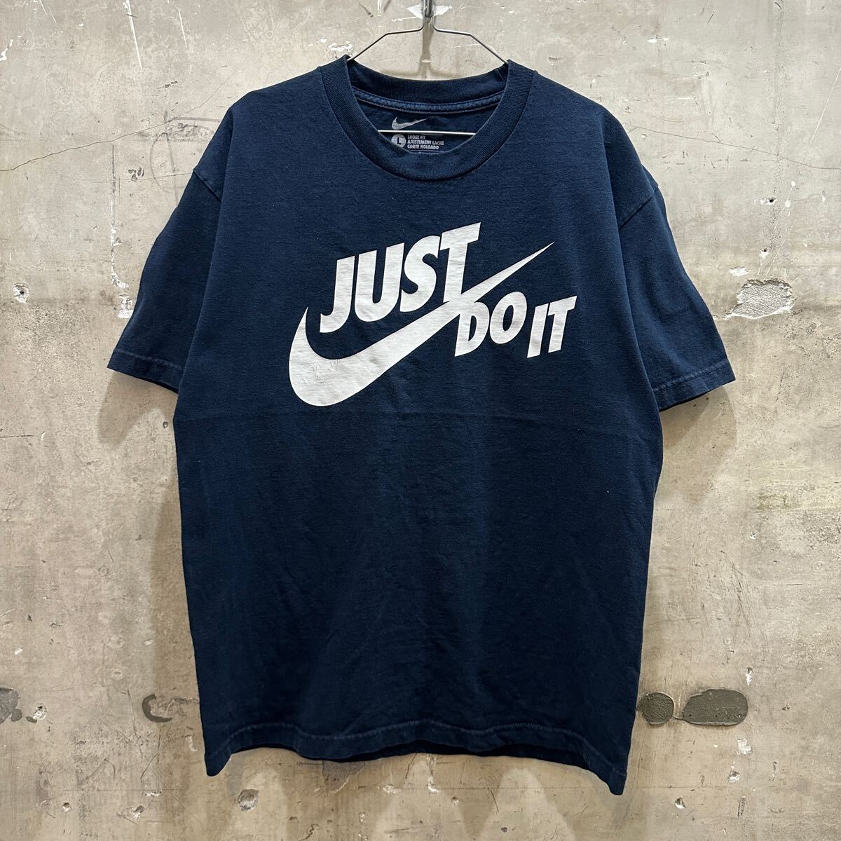 US古着NIKE ナイキ JUST DO IT ロゴTシャツ ネイビー 紺色