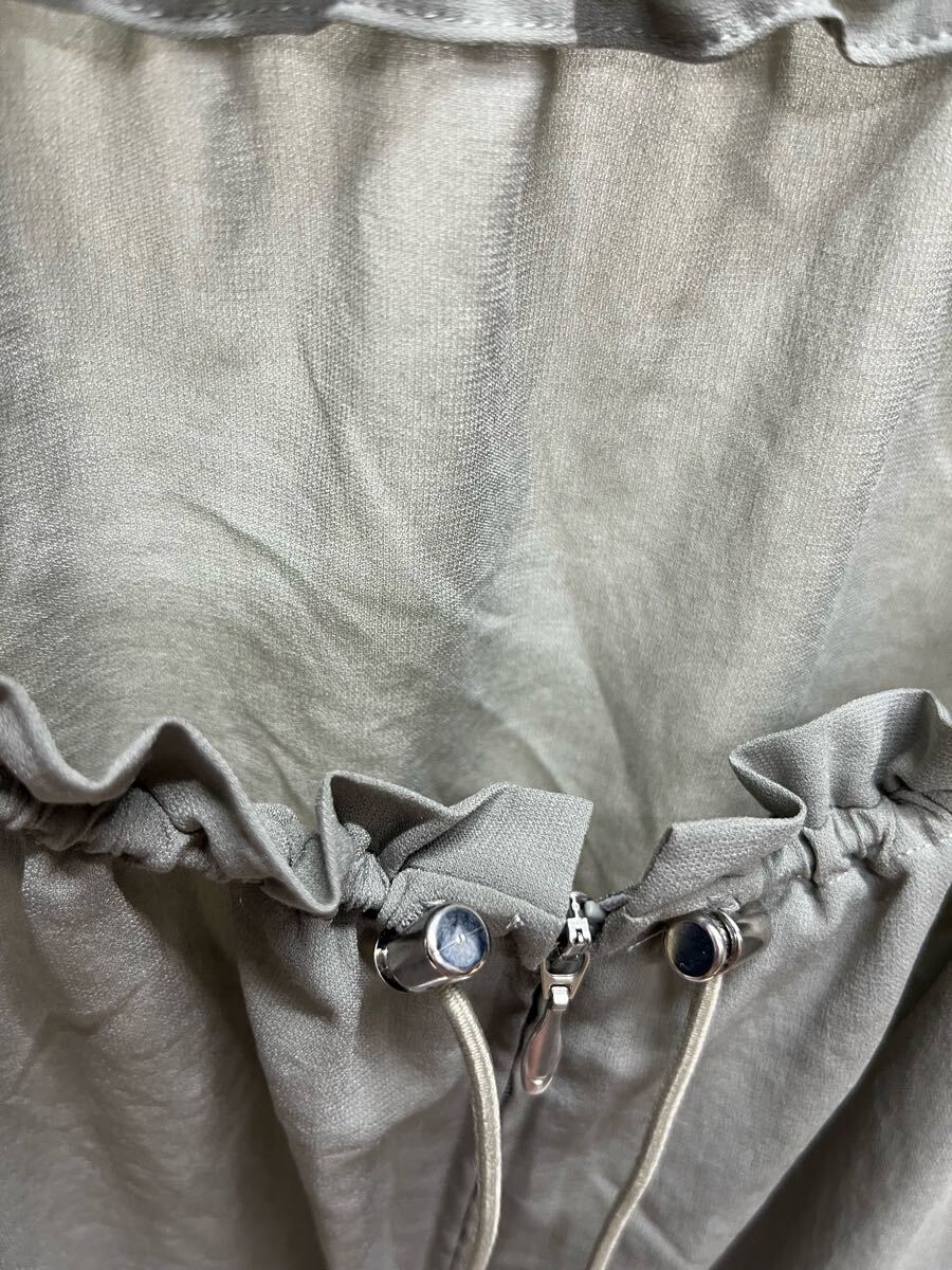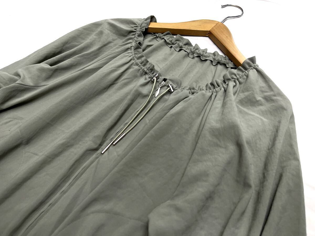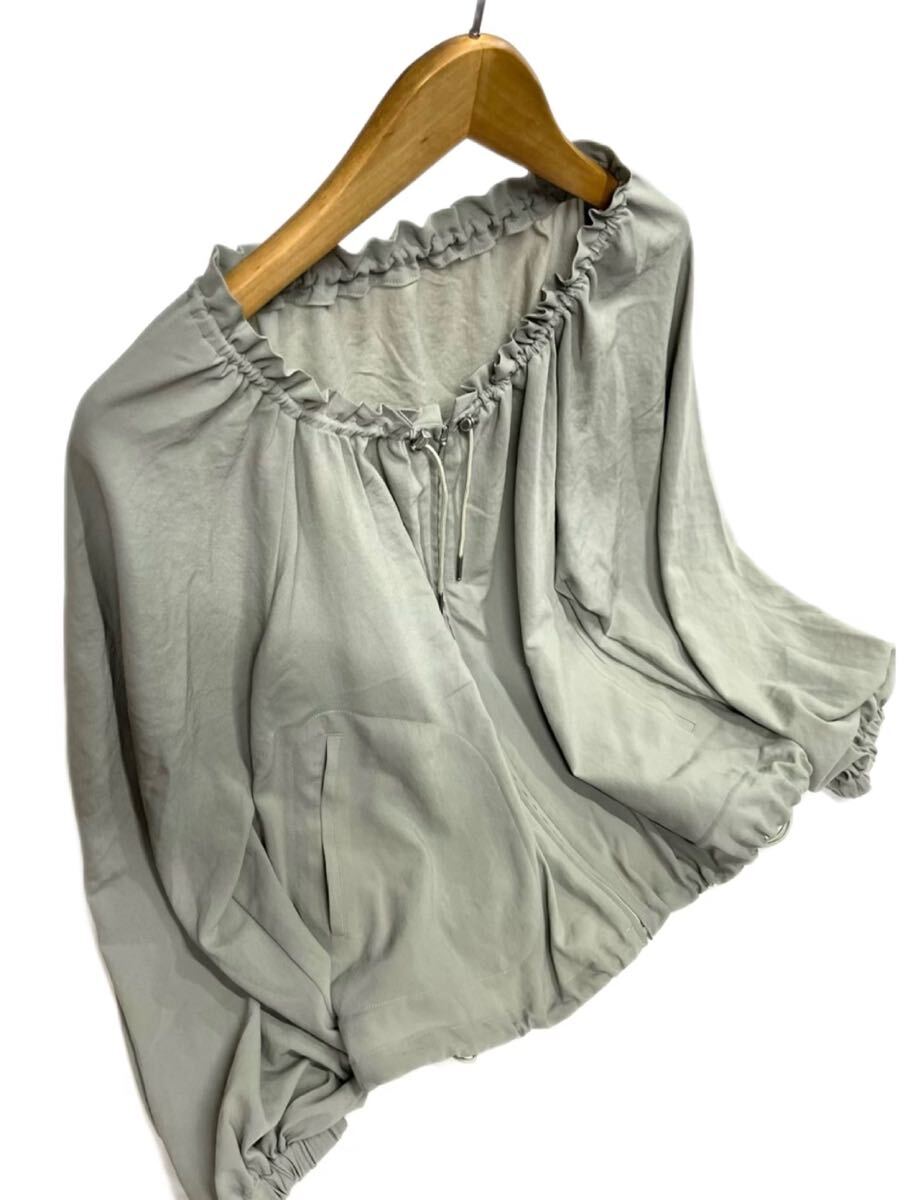 Tines★ティネス(38)やや透け感 薄地シフォン ふんわり ボリュームスリーブ ジップ ジャケット/ライトカーキグレー系 美品 日除 冷房対策