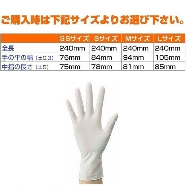 ![]() ![]() ●食品衛生法370号適合 ●素手感覚でしなやかフィットの薄手タイプ ●弾力性があり圧迫感を軽減 ●耐油性・耐静電性に優れています ●パウダー(粉)無し ![]() 【商品詳細】 材質:NBR(ニトリルゴム) カラー:ホワイト 1箱内容量:100枚 製造国:タイ 製造メーカー:株式会社エブノ SSサイズ 手袋サイズ:全長:24cm以上/掌幅:7.8±0.5cm 1箱サイズ:200X110X60mm 1箱重量:約335g JANコード:4520951007744 Sサイズ 手袋サイズ:全長:24cm以上/掌幅:8.0±0.5cm 1箱サイズ:210X110X60mm 1箱重量:約340g JANコード:4520951007751 Mサイズ 手袋サイズ:全長:24cm以上/掌幅:9.5±0.3cm 1箱サイズ:210X110X60mm 1箱重量:約388g JANコード:4520951007768 Lサイズ 手袋サイズ:全長:24cm以上/掌幅:11.0±0.3cm 1箱サイズ:210X110X60mm 1箱重量:約420g JANコード:4520951007775 |