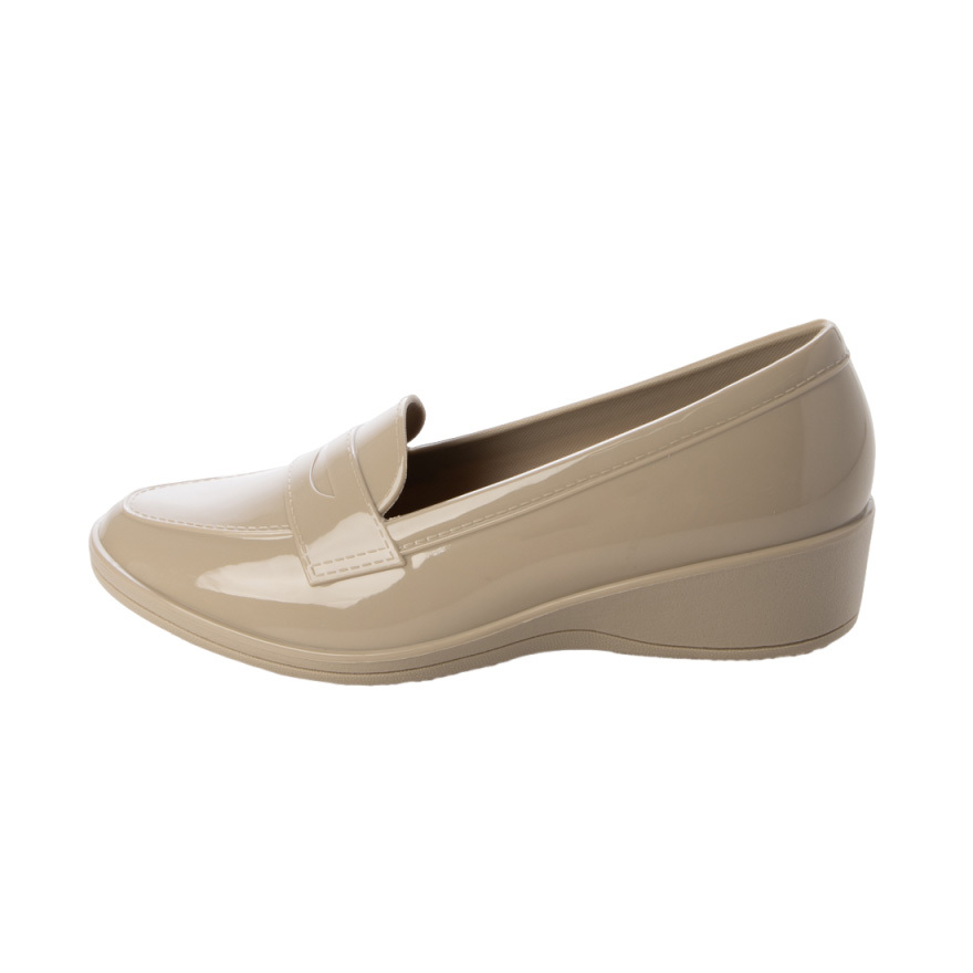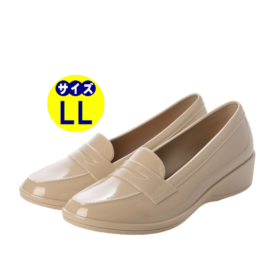 レディース エナメル調 レインローファー レインシューズ クッションインソール 晴雨兼用 完全防水 防滑底 グレージュ 25058-grg-ll