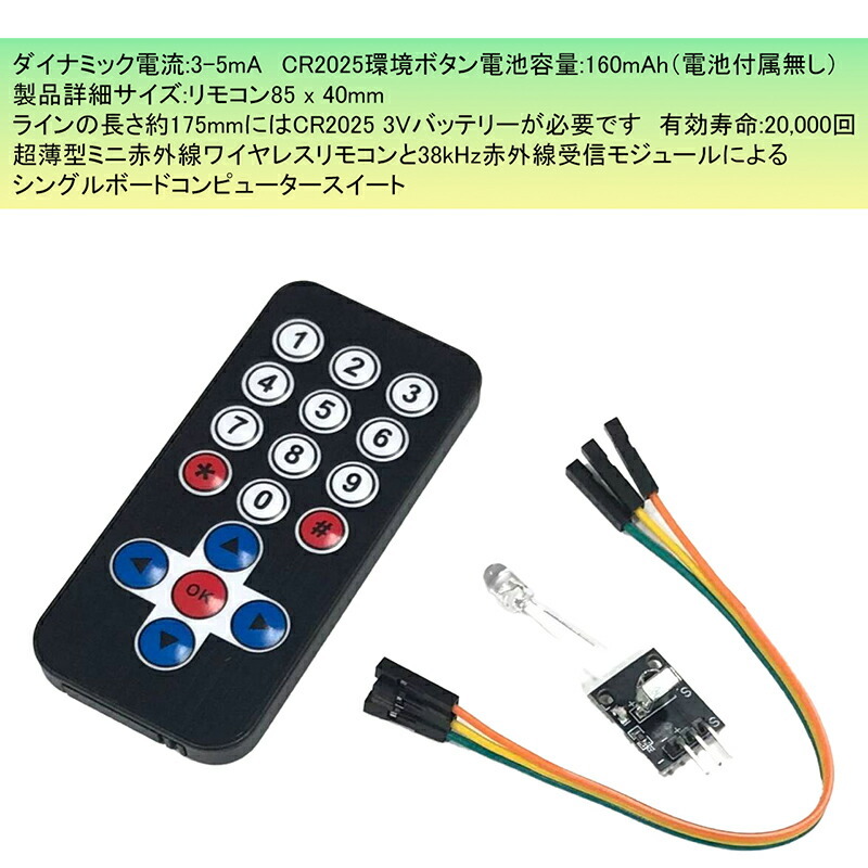 有効寿命:20,000回超薄型ミニ赤外線ワイヤレスリモコンと38kHz赤外線受信モジュールによるシングルボードコンピュータースイート