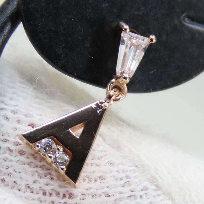 商品説明 | アルファベットの【A】にクリアなストーンが付いた可愛らしい商品です。専用の箱が付いております。 |