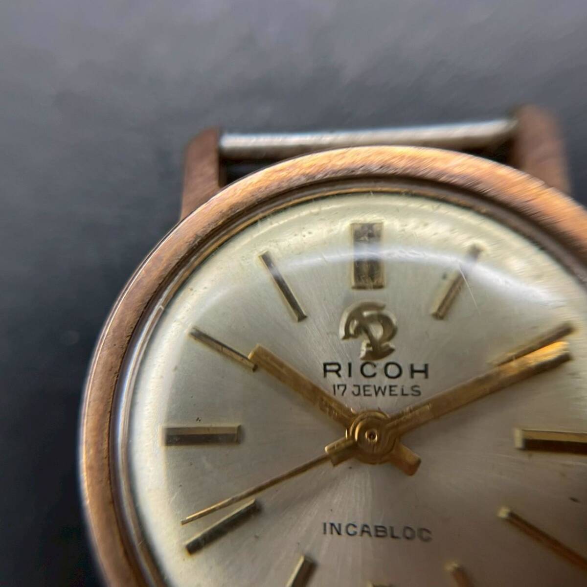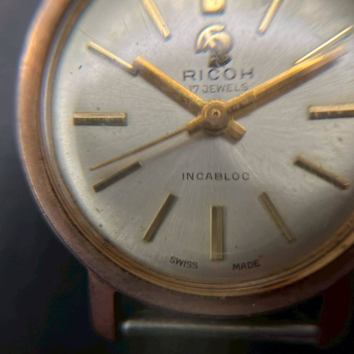 SW0424-37-3 現状品 RICOH 17JEWELS リコー アナログ腕時計 手巻き式 スイス製 ゴールド ベルトなし かん1.3cm ケース2.5cm 60サイズ