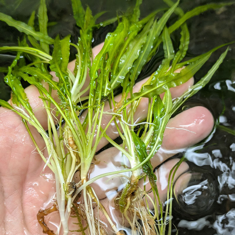 細かく波打つ幅の細い葉がとても美しい水草です。球根水草は根が重要で底床肥料の添加は有効です。