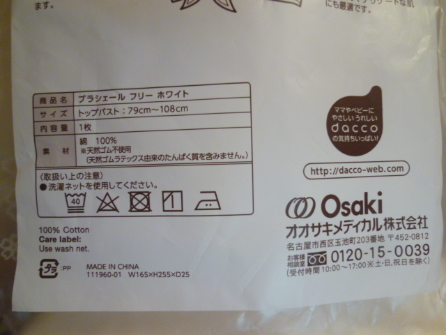 サイズ:トップバスト:79cm~108cm/96.5g袋ごと