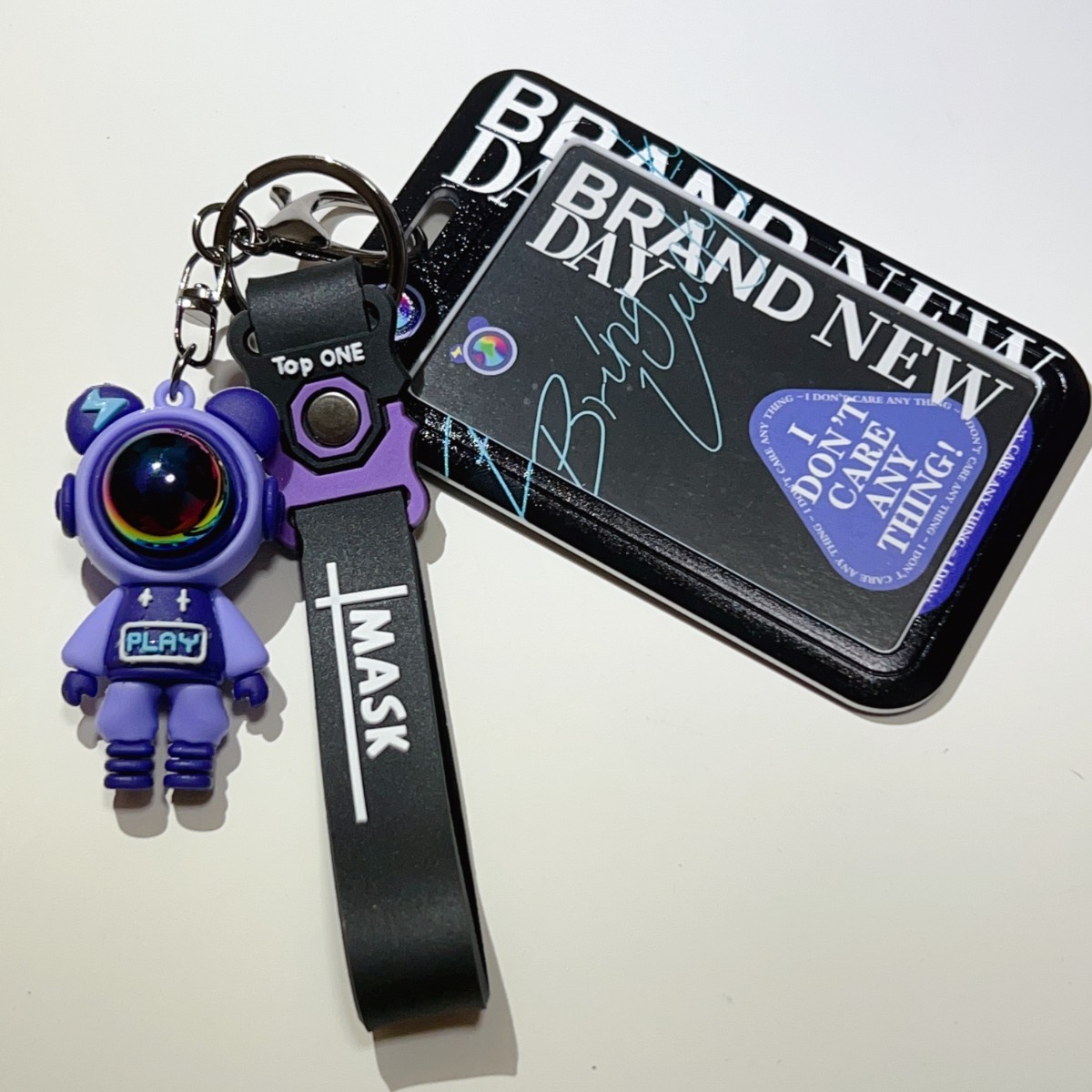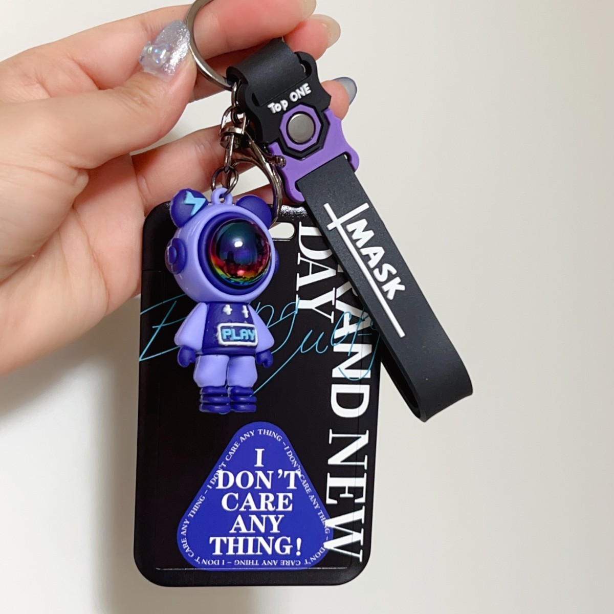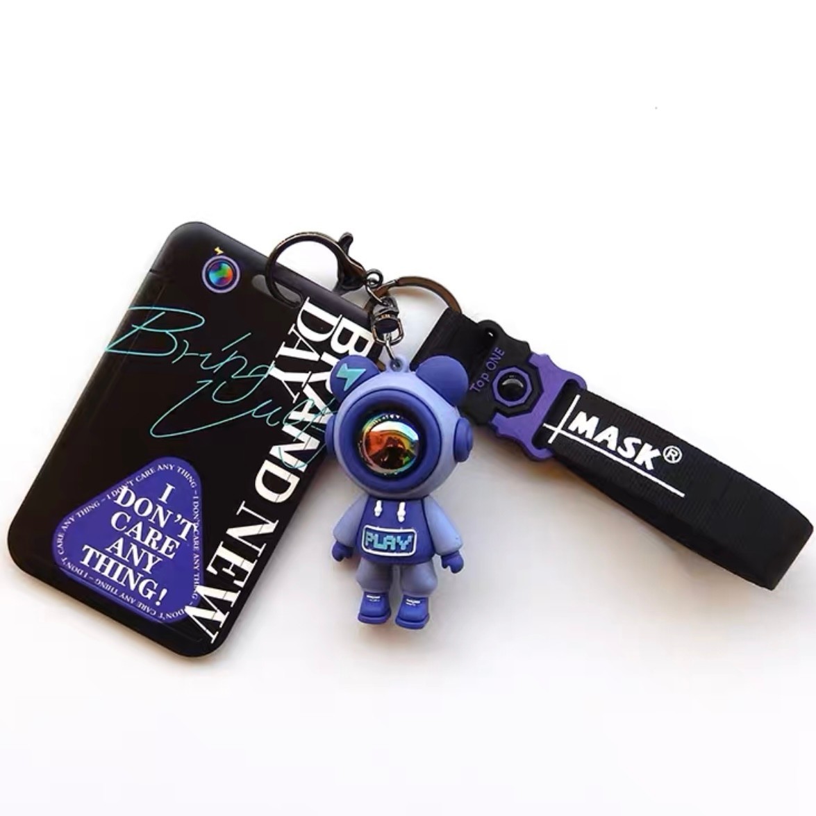可愛い宇宙飛行士姿ベアフィギュア付きのカードケース、ストラップ付きでとても便利。