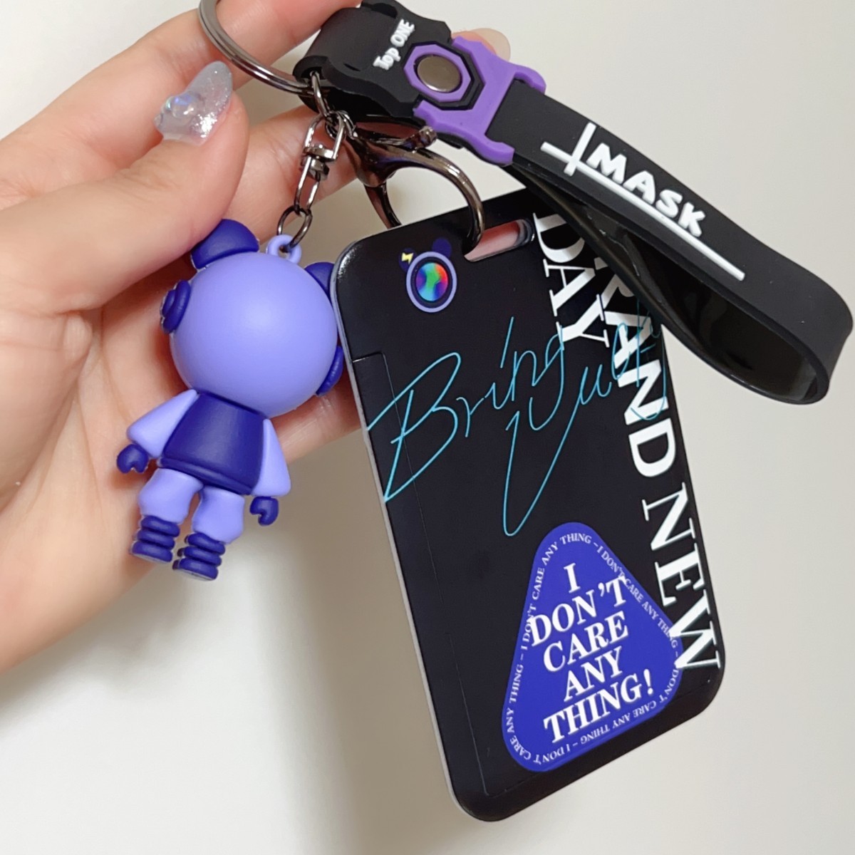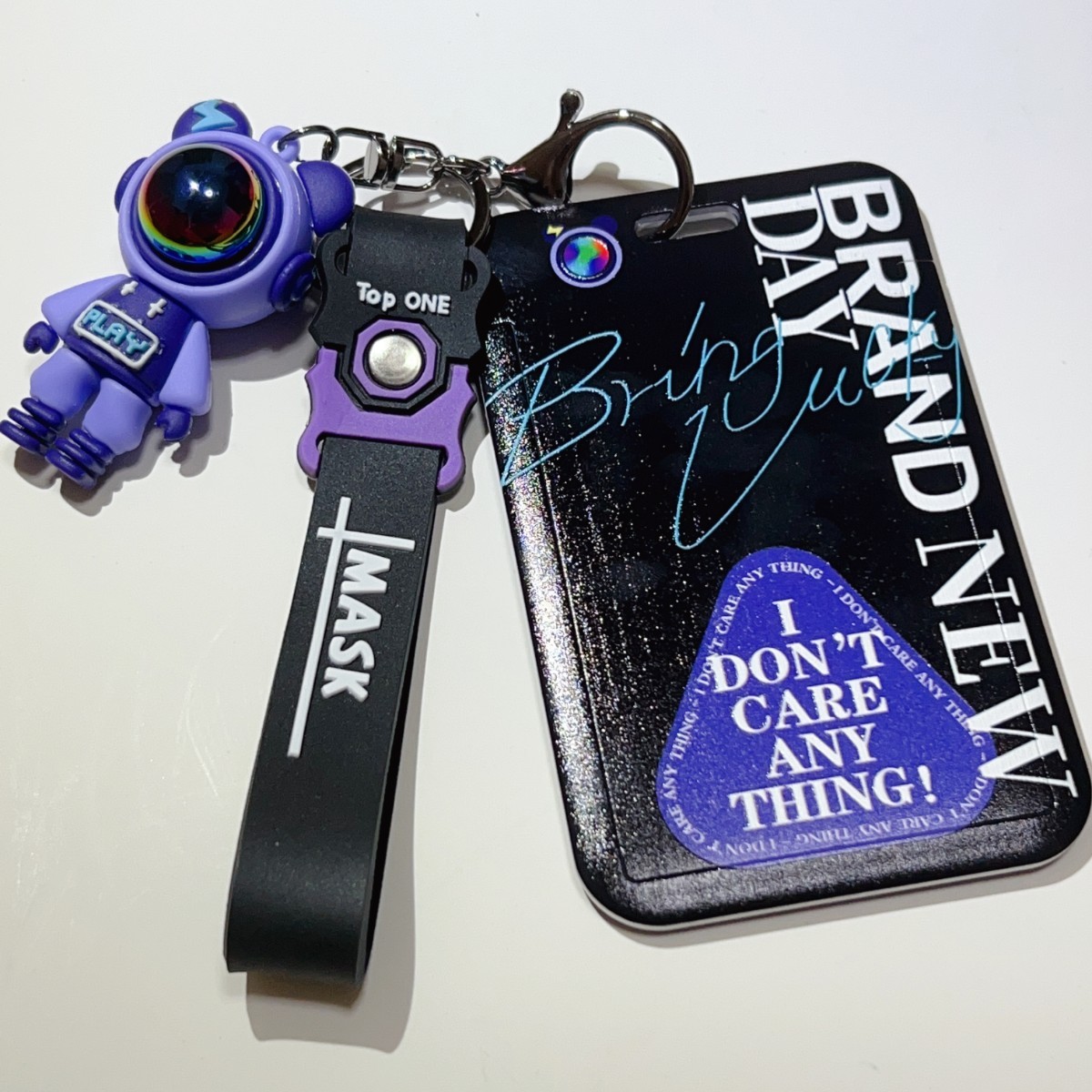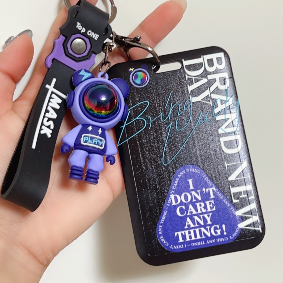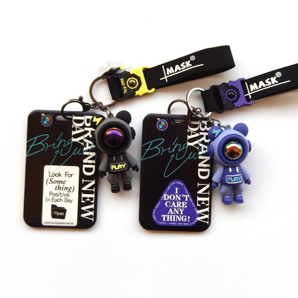 可愛い宇宙飛行士姿ベアフィギュア付きのカードケース、ストラップ付きでとても便利。