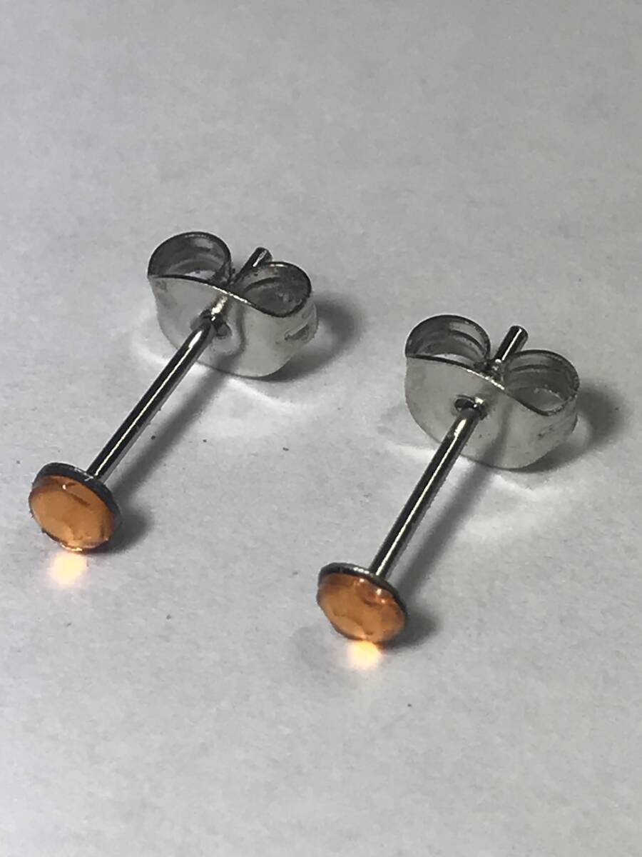 2個1セット 幅3mm ラインストーン スタッドピアス オレンジ 両耳用 ステンレス アクリル製 シンプル つけっぱなしOK 安い