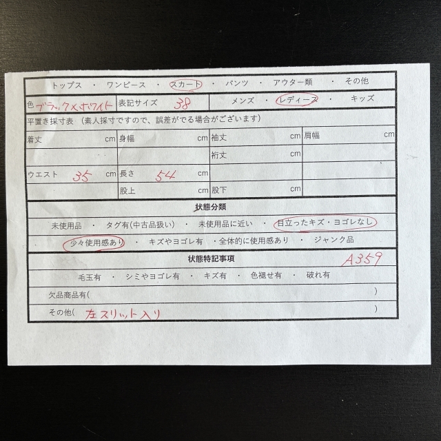 A359◇UNITED ARROWS | ユナイテッドアローズ スカート ブラック×ホワイト レディース 38サイズ 中古品