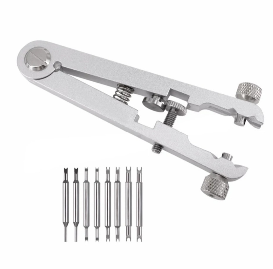 ★ 腕時計ベルト調整器具 バネ棒はずし工具両つかみシルバー ロレックス オメガ対応。