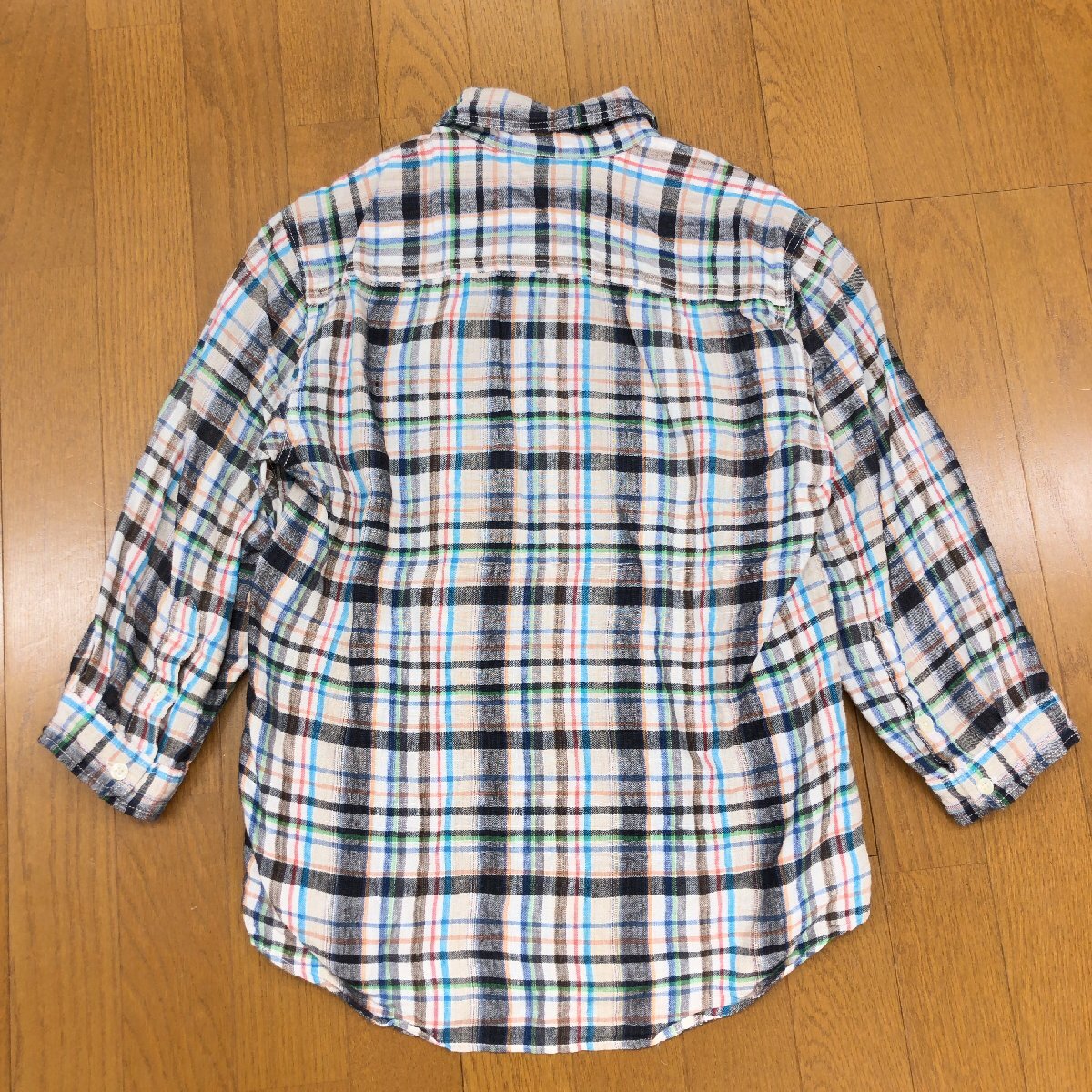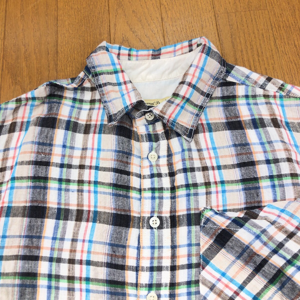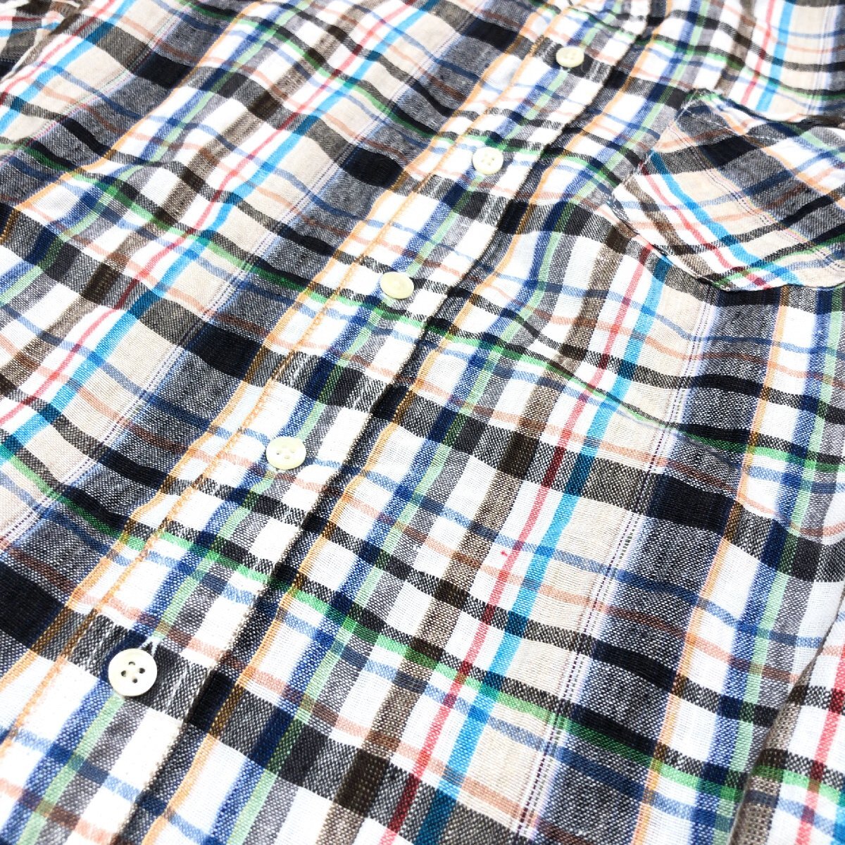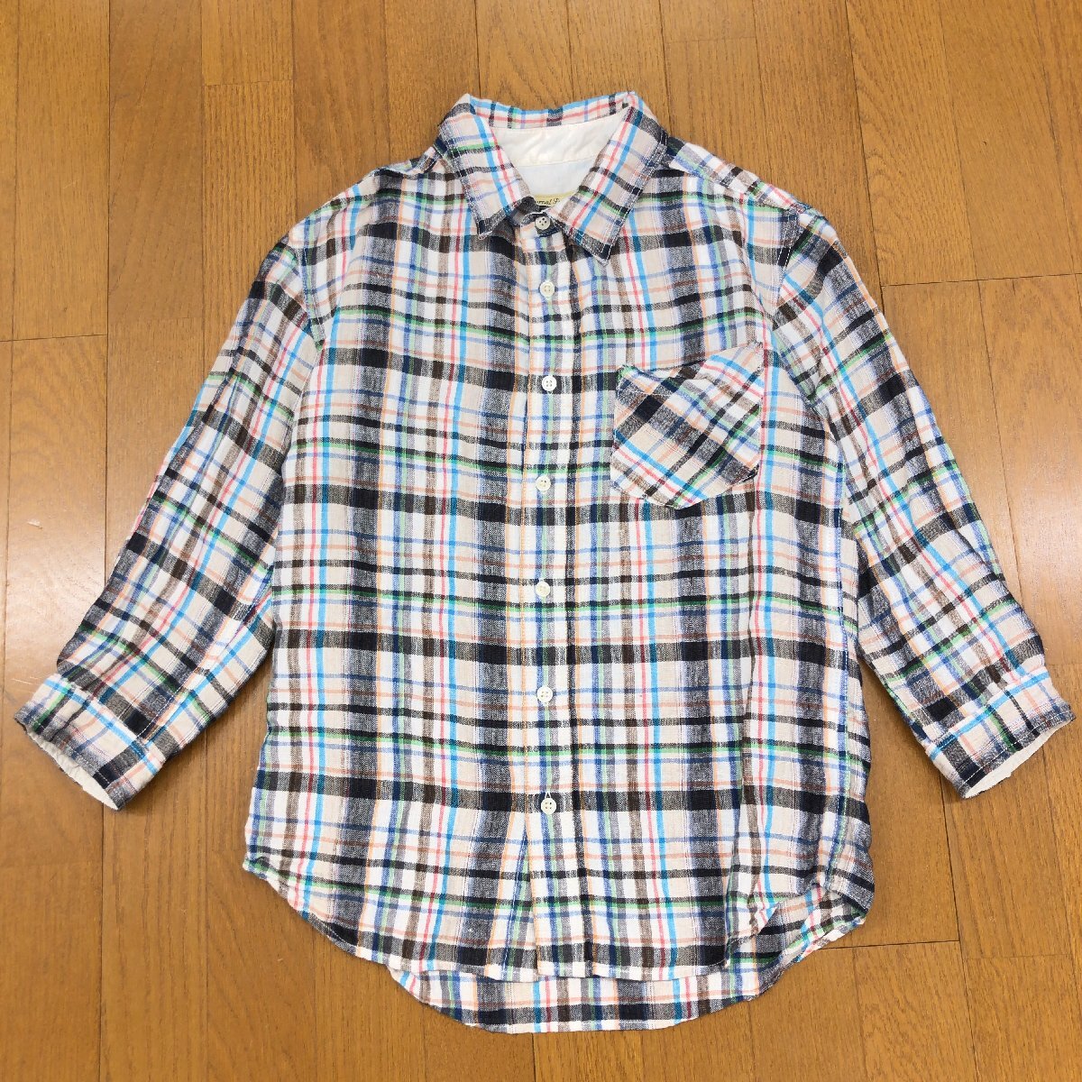 美品 JOURNAL STANDARD ジャーナルスタンダード 麻 リネン100% チェック シャツ M マルチカラー 七分袖 カジュアル 国内正規品 メンズ 紳士