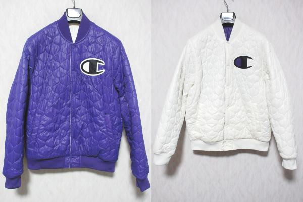 Champion チャンピオン ロゴ リバーシブル 中綿ジャケット メンズ 2XL 大きいサイズ パープル ホワイト kn2487