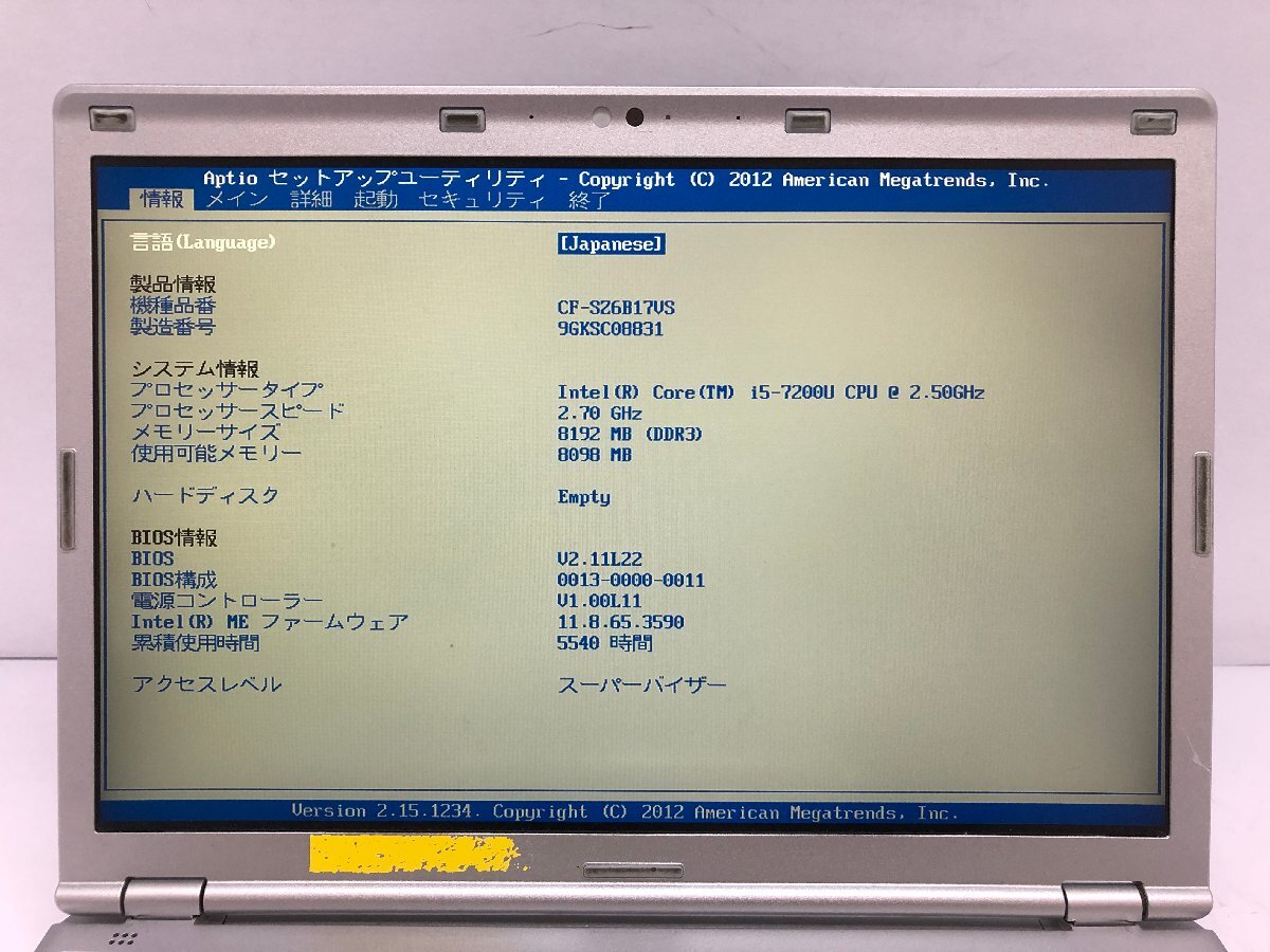 ジャンク/ Panasonic CF-SZ6B17VS Intel Core i5-7200U メモリ8.19GB ストレージ無し 【K16647】