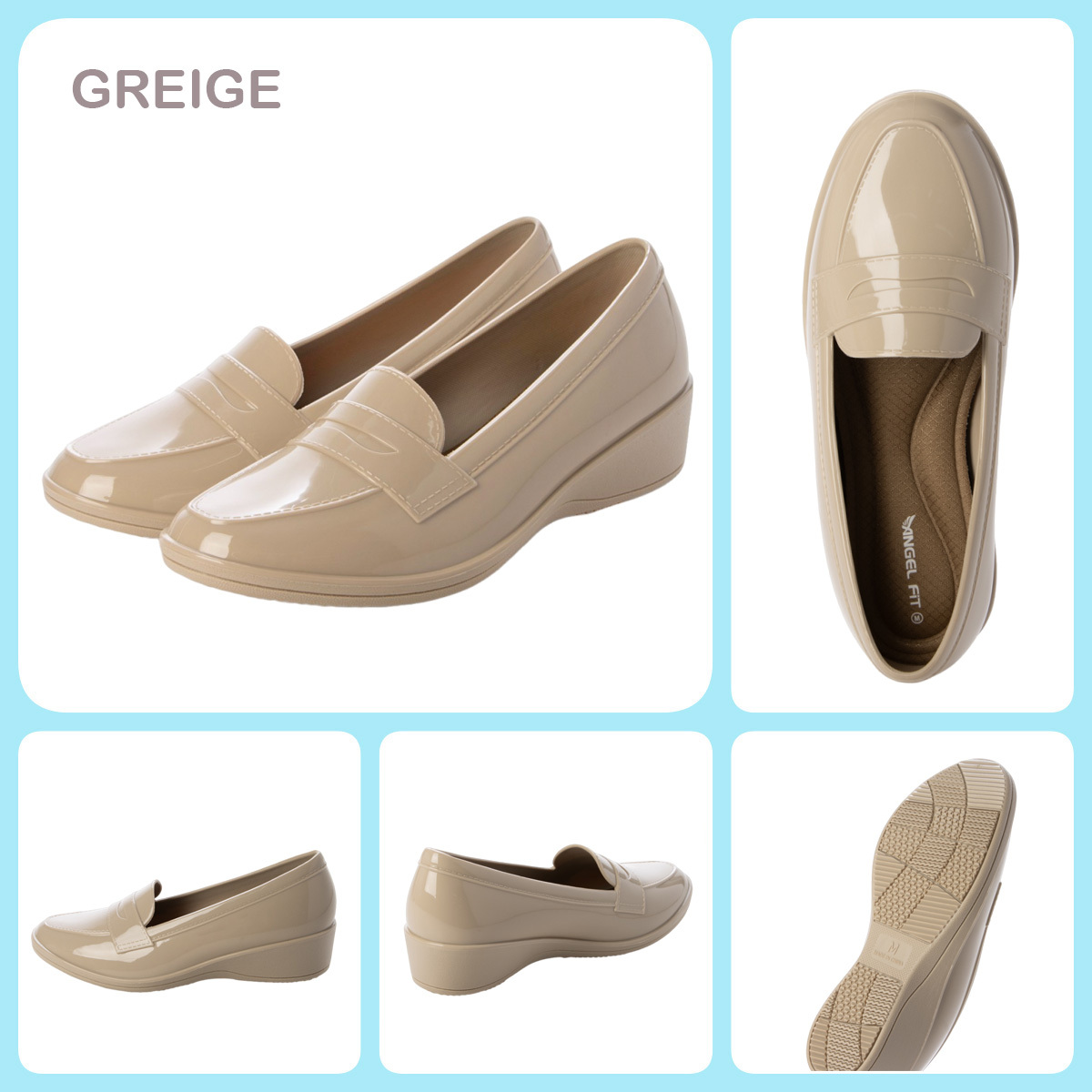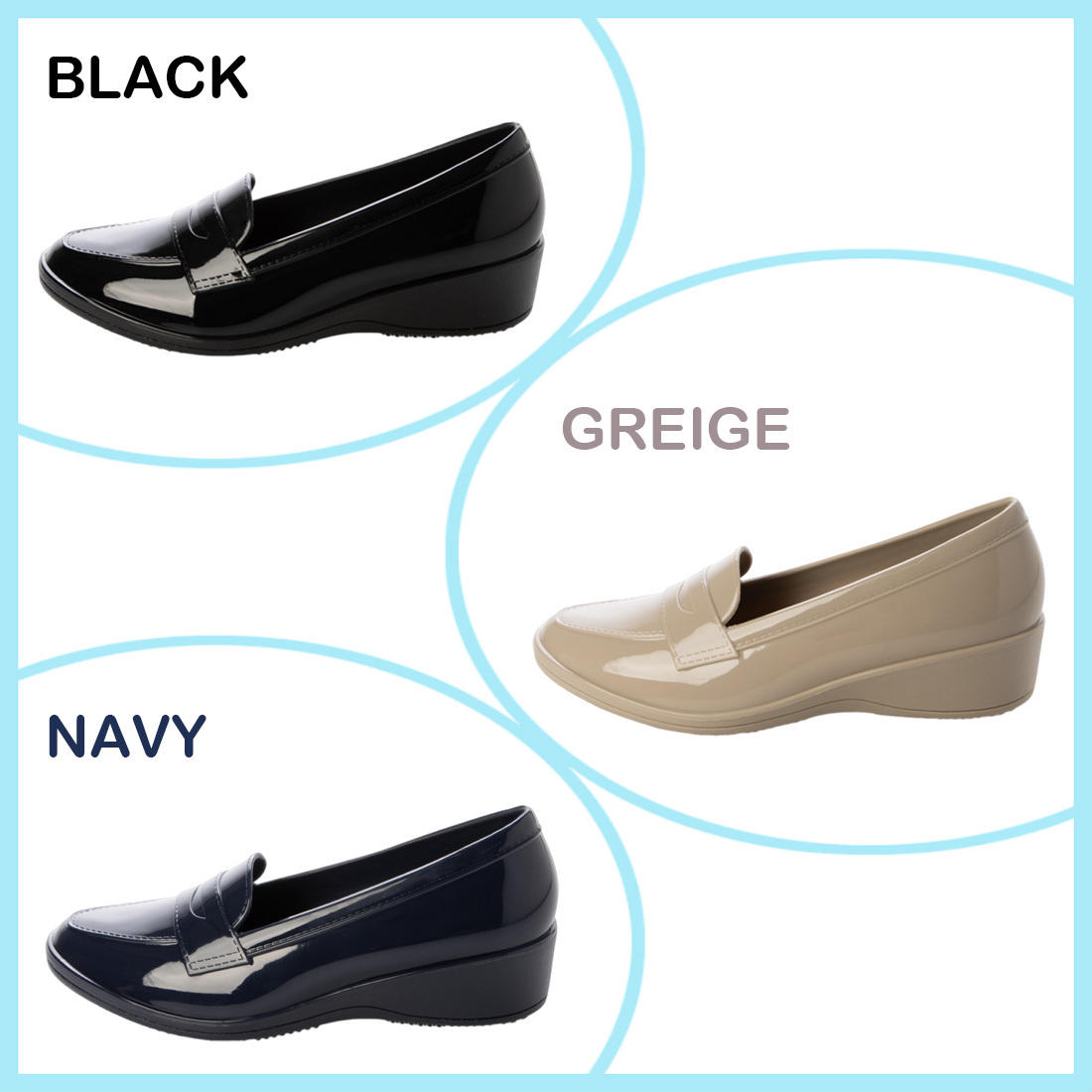レディース エナメル調 レインローファー レインシューズ ラウンドトゥ ローヒール インソール 晴雨兼用 完全防水 防滑底 25058-grg-l
