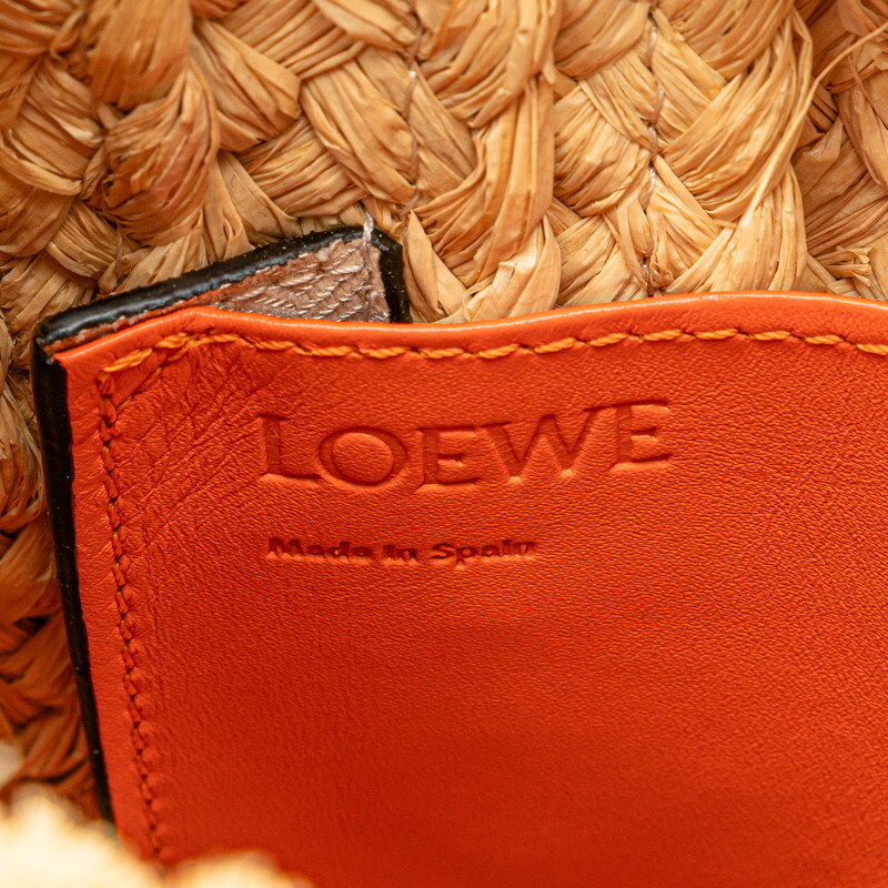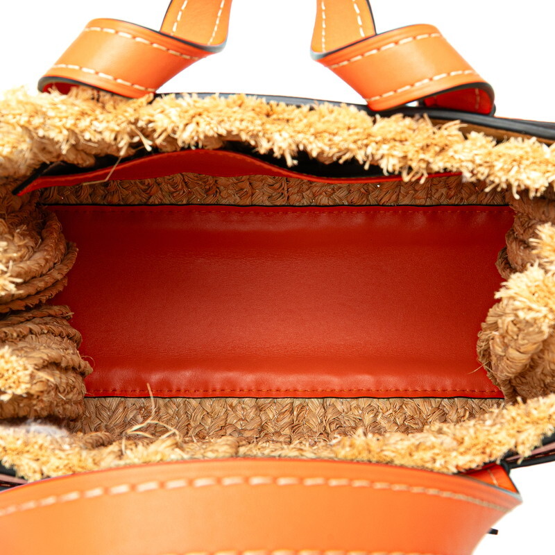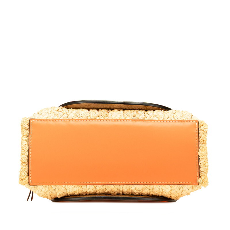 ロエベ アナグラム ゲート トップハンドル スモール ショルダーバッグ ハンドバッグ 2WAY オレンジ ベージュ ラフィア LOEWE 【中古】