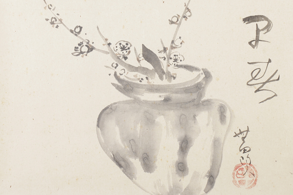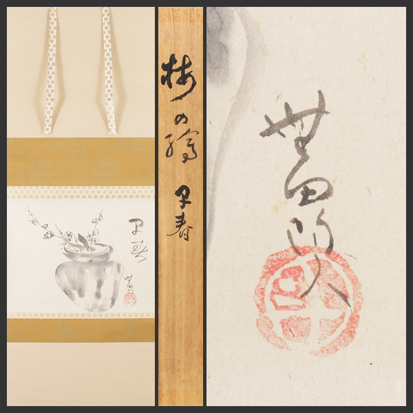 | 【古美味】人間国宝 荒川豊蔵 自筆梅の絵画賛「早春」軸装 茶道具 保証品 |