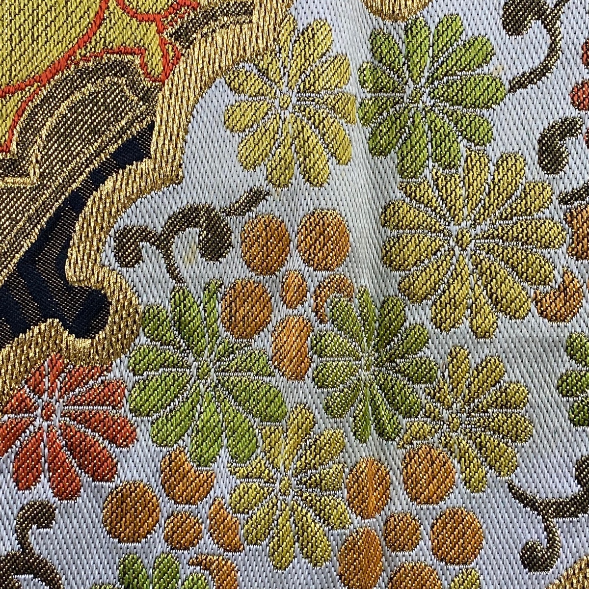 | 軍配マークと三本線が特徴の「川島織物」謹製の作品です。 おめでたい席に相応しい意匠の袋帯でございます。 格式高いお席にもお使いいただけますので、お見逃しのないようお願いいたします。 締め跡がございます。 前柄所々にシミ、表地所々に薄いシミがございます。 リユース品としては良い状態で、まだまだご活用頂けると思われます。 沢山の商品の中からご覧いただき誠にありがとうございます。 【PR2】 | 状態ランク |