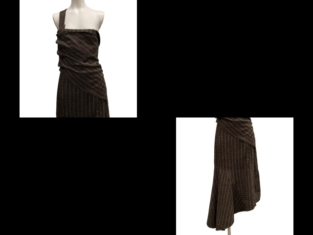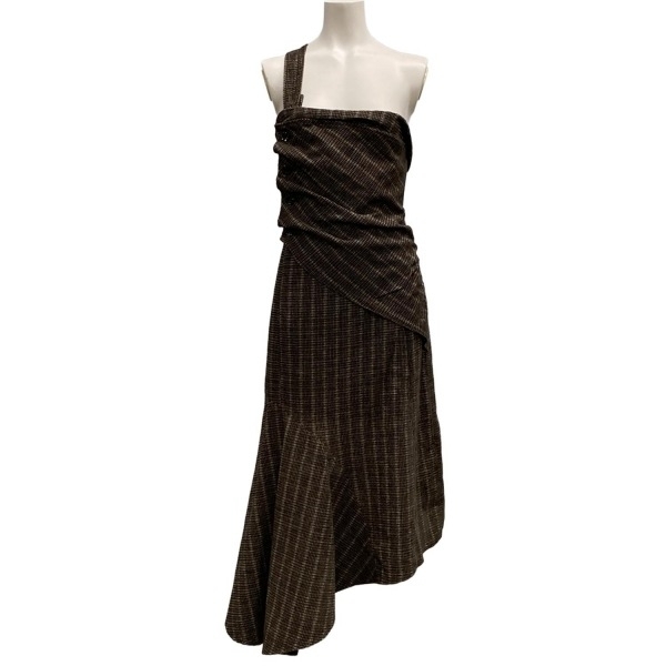 カーサフライン CASA FLINE サイズF - 黒×ダークブラウン レディース キャミワンピ/ロング/ワンショルダー ワンピース