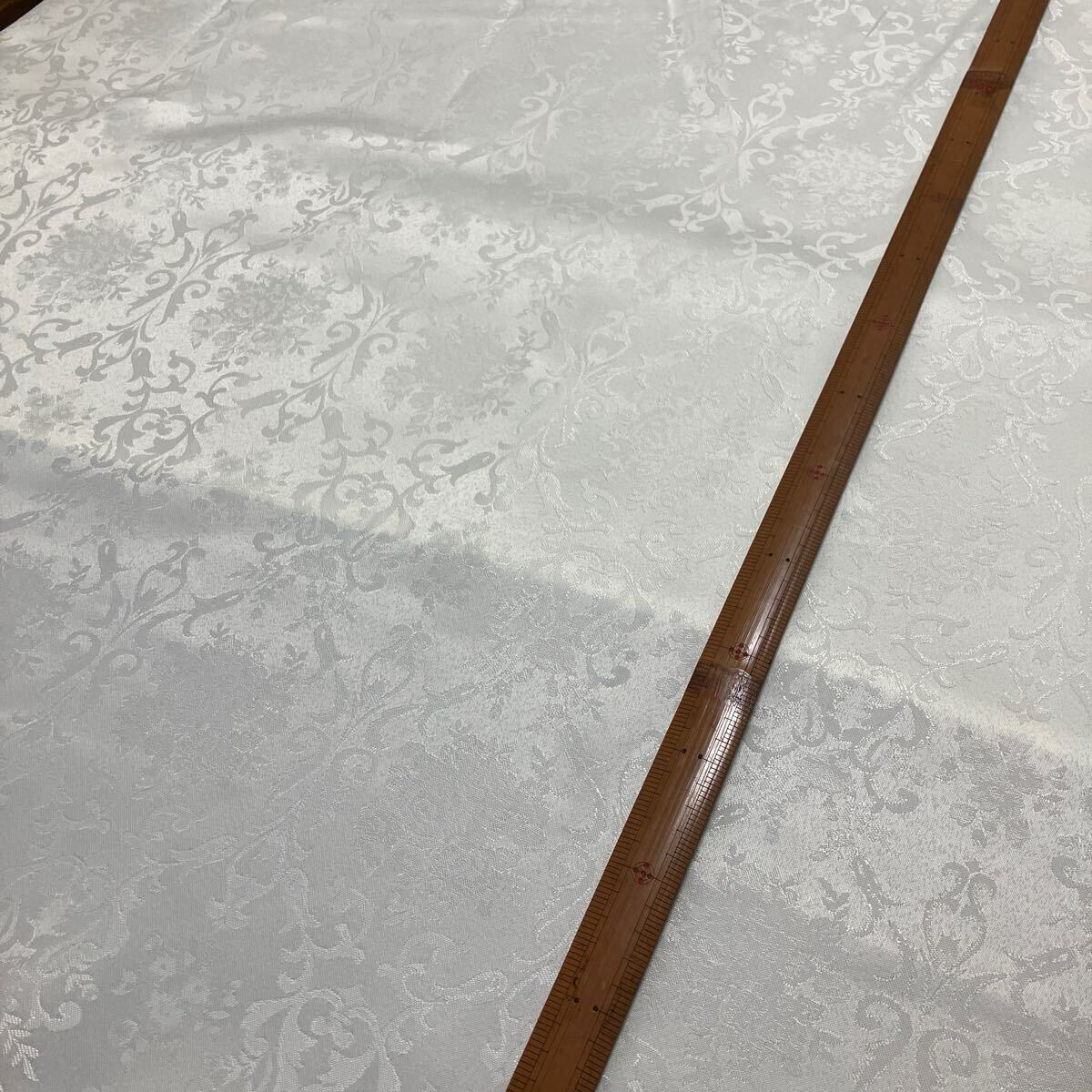 ベージュ系のダマスク柄のエレガントなテーブルクロスです。クラシックなジャガード織のダマスク柄です。周りは三つ折りです。ポリエステルですので家で手洗いして頂けます。撥水加工を施しています。
