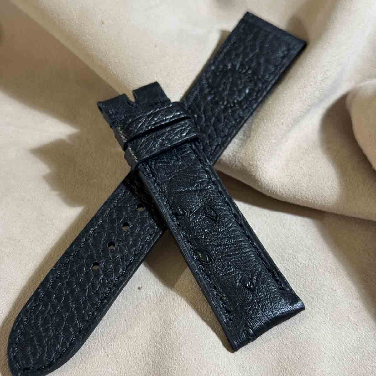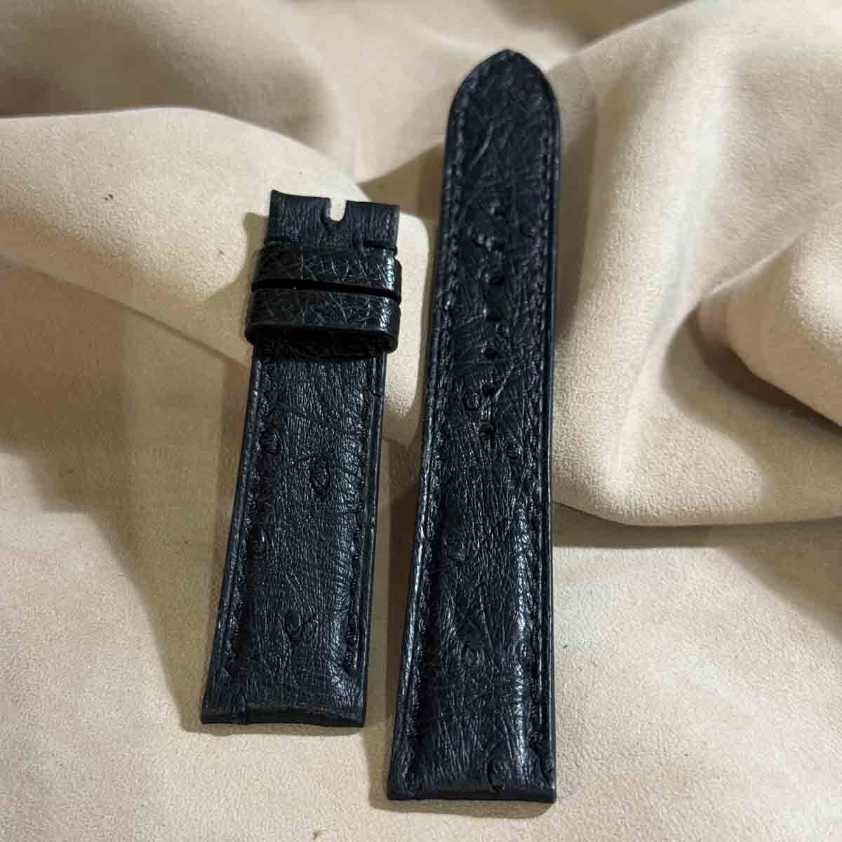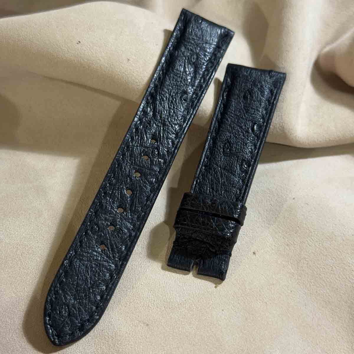 ost-421 オーストリッチレザー 腕時計ベルト ブラック (ラグ幅20mm - バックル幅18mm)