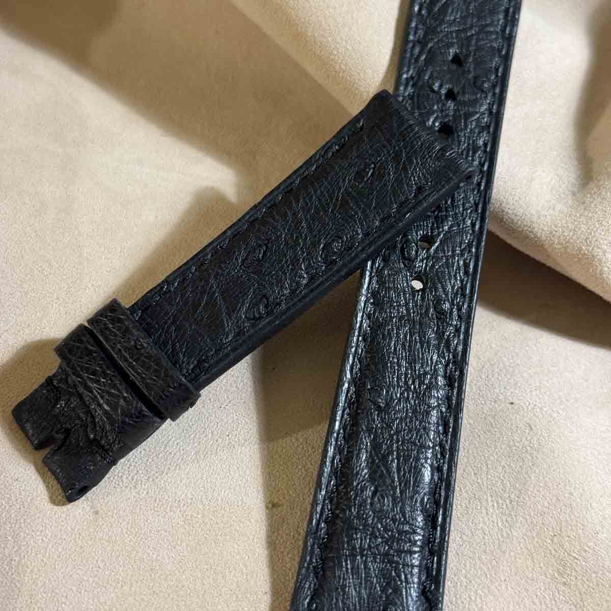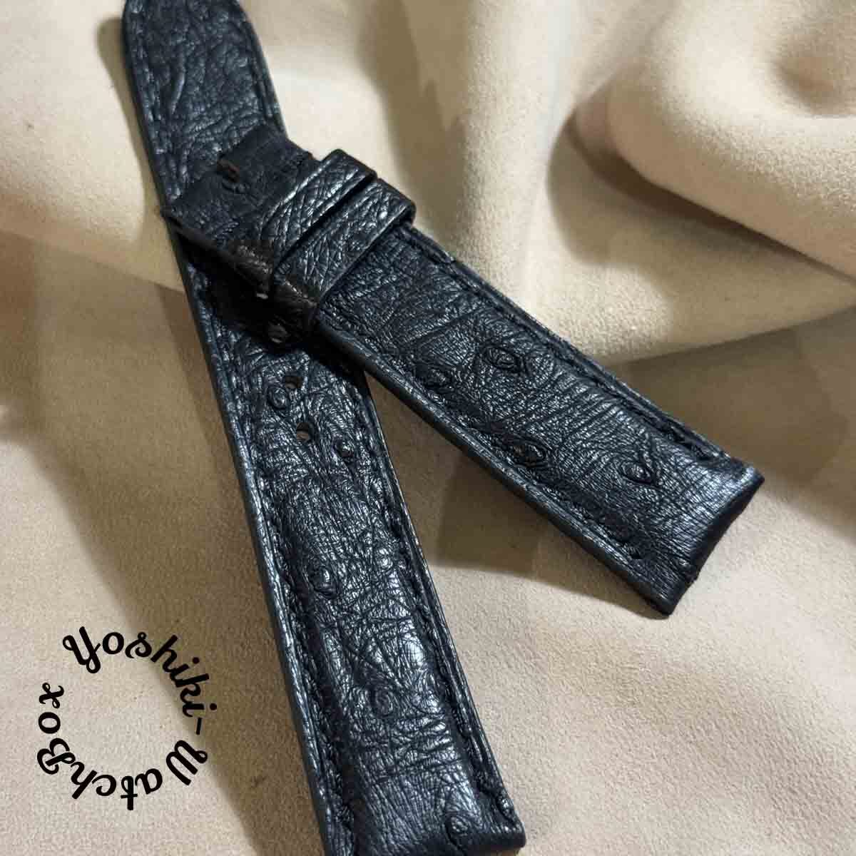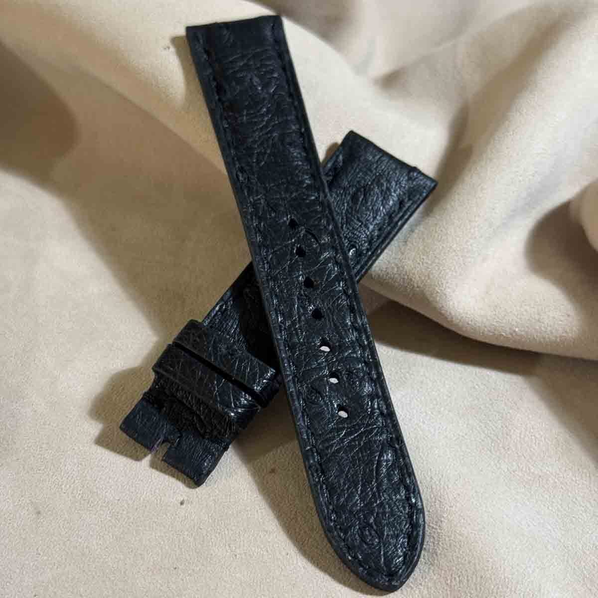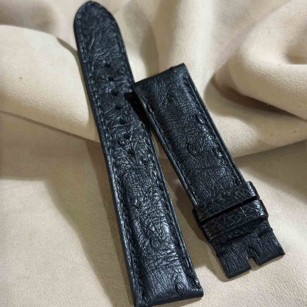 ost-421 オーストリッチレザー 腕時計ベルト ブラック (ラグ幅20mm - バックル幅18mm)