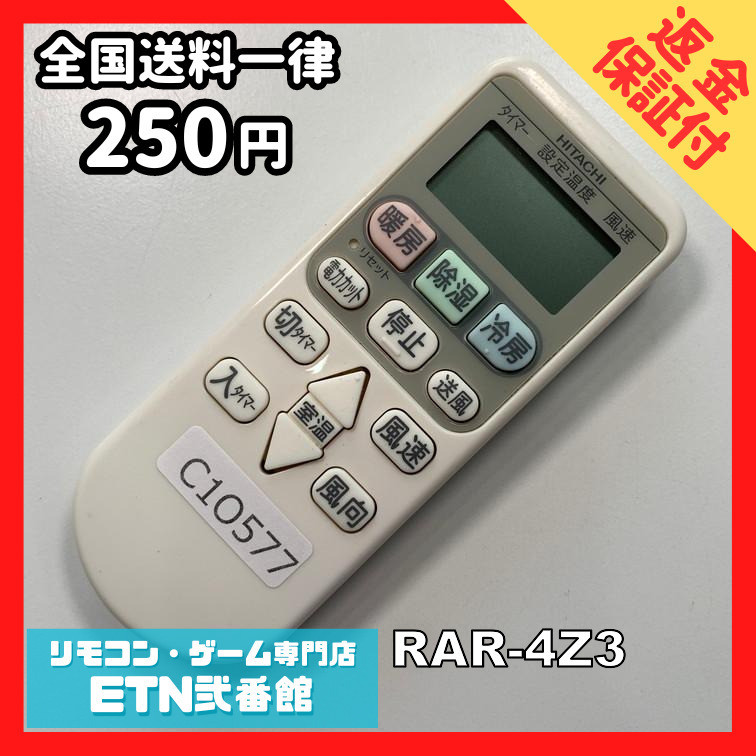 C1O577 【送料250円】エアコン リモコン / 日立 ヒタチ HITACHI RAR-4Z3 動作確認済み★即発送★ * 冷房 暖房