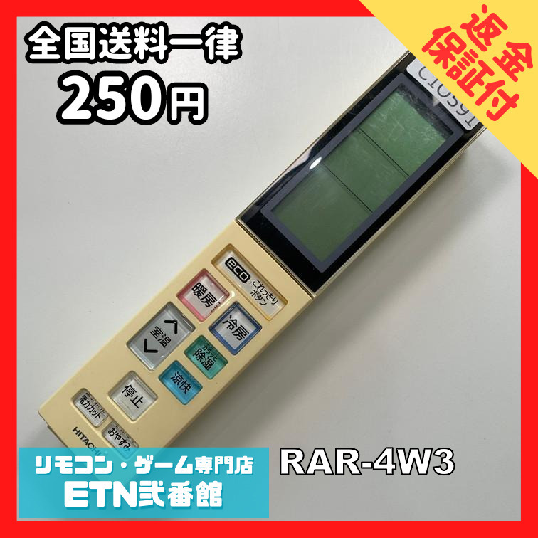 C1O591 【送料250円】エアコン リモコン / 日立 ヒタチ HITACHI RAR-4W3 動作確認済み★即発送★ * 冷房 暖房